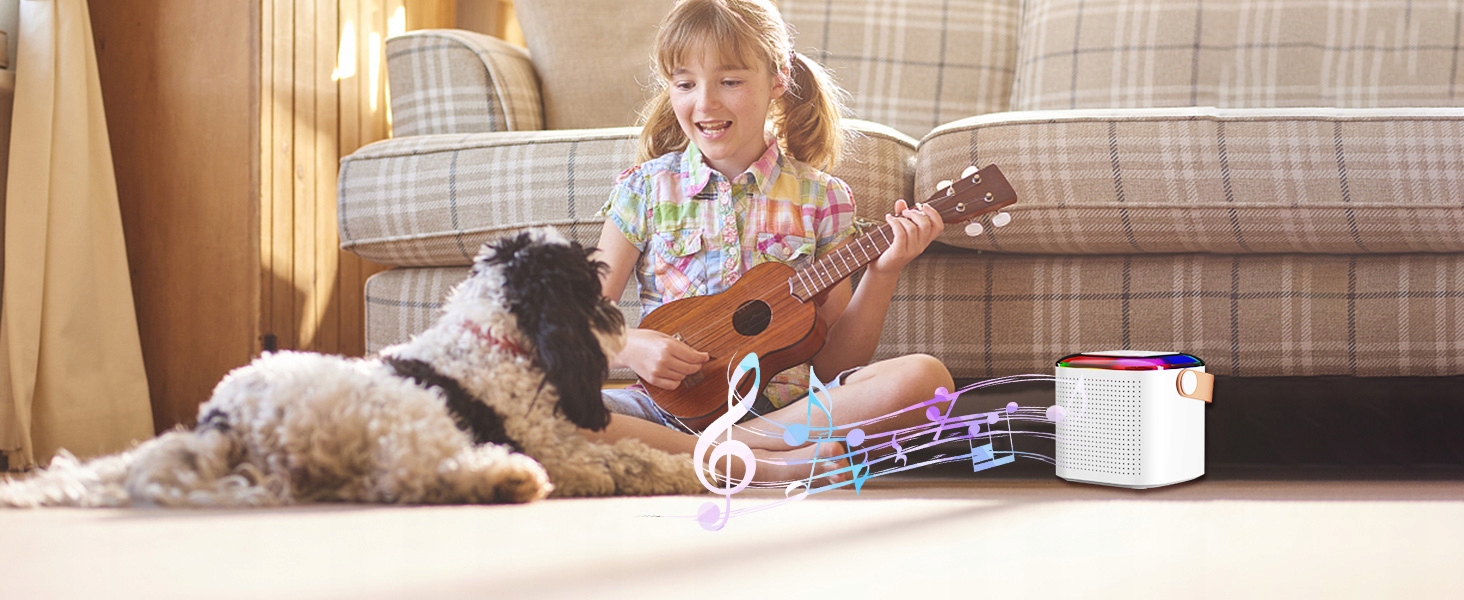 - Караоке-машина, портативна колонка, музика плеєр і вечірнє освітлення в одному!