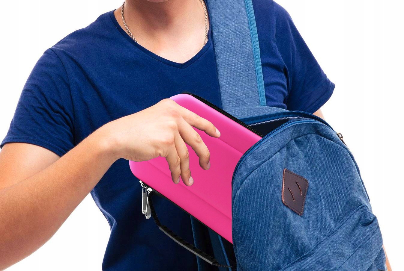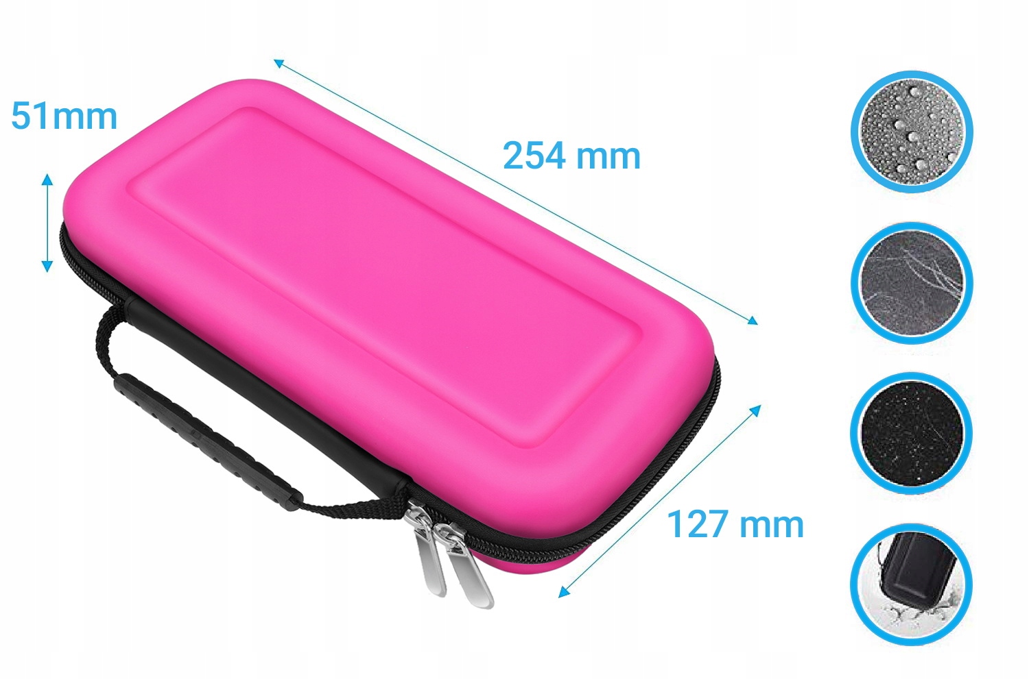 Корпус ідеально підходить для вашої Nintendo Switch та Nintendo Switch OLED -консолі - вона ідеально захищає її . Всередині є спеціальні відсіки, що містять до 10 ігор з іграми . У верхній частині справи є спеціальне місце для зберігання аксесуарів для консолі , таких як зарядний пристрій, силовий банк, навушники, ігри з ігор тощо. Обкладинка також має практичний повідок для перенесення.