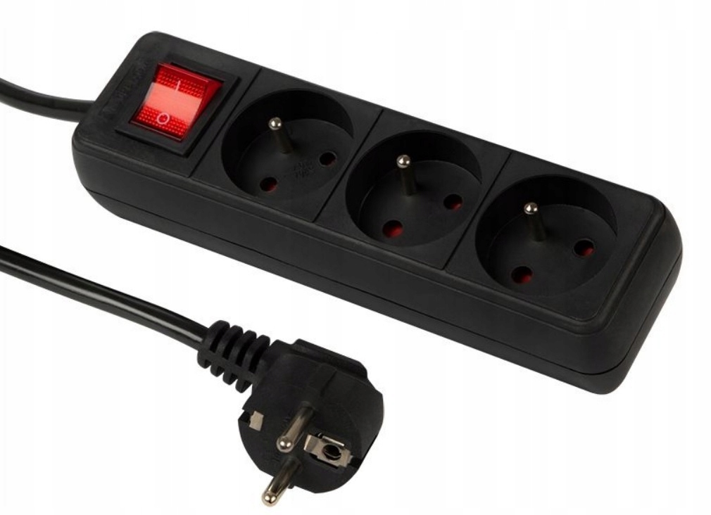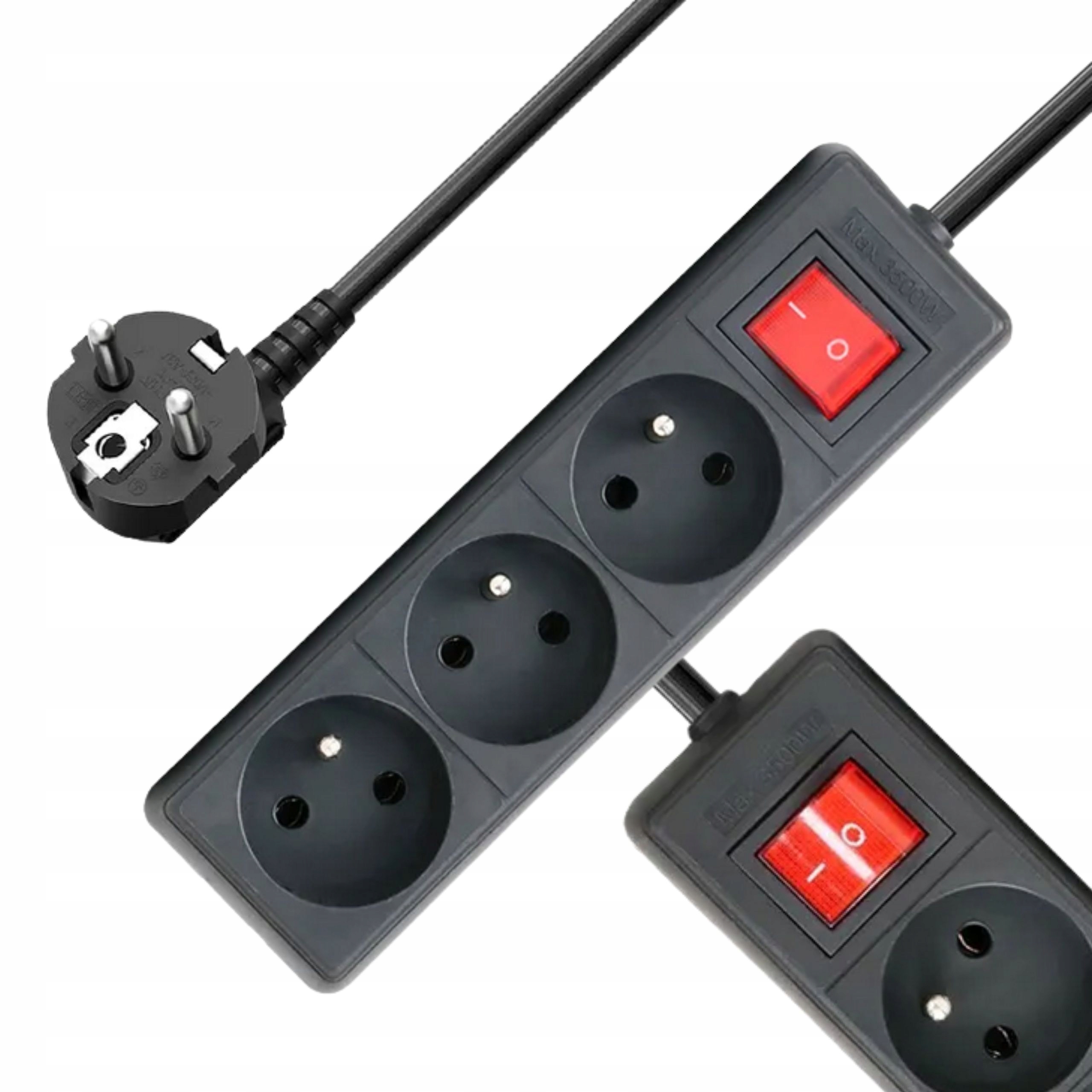 Шнур з розширенням мережі Black Electromet з трьома розетками, ідеально підходить для домашнього використання. Це дозволяє підключати пристрої на більшій відстані від електричної розетки. Продукт оснащений трьома розетками, що обертаються під кутом, і однокутна мережа.