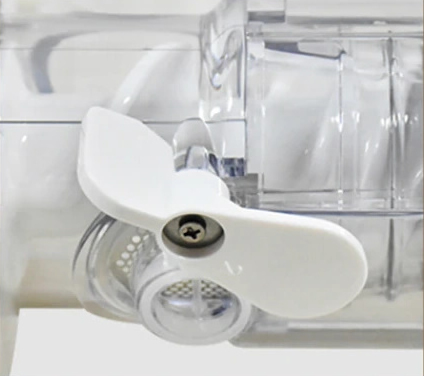 Z5-E15 Joyoung оснащено зливною пробкою, яка виконує дві функції. Одним з них є можливість змішувати сік з різних продуктів у великій камері соковижималки. Таким чином ми отримаємо готовий до вживання сік. Друга корисна функція - можливість закривати кришку, коли ємність для соку заповнена і настав час пити свіжовичавлений сік, або розливати сік з глечика по склянках. Великою перевагою є можливість вичавлювати сік прямо в склянку, тоді непроливаюча пробка стане в нагоді при заміні склянки.