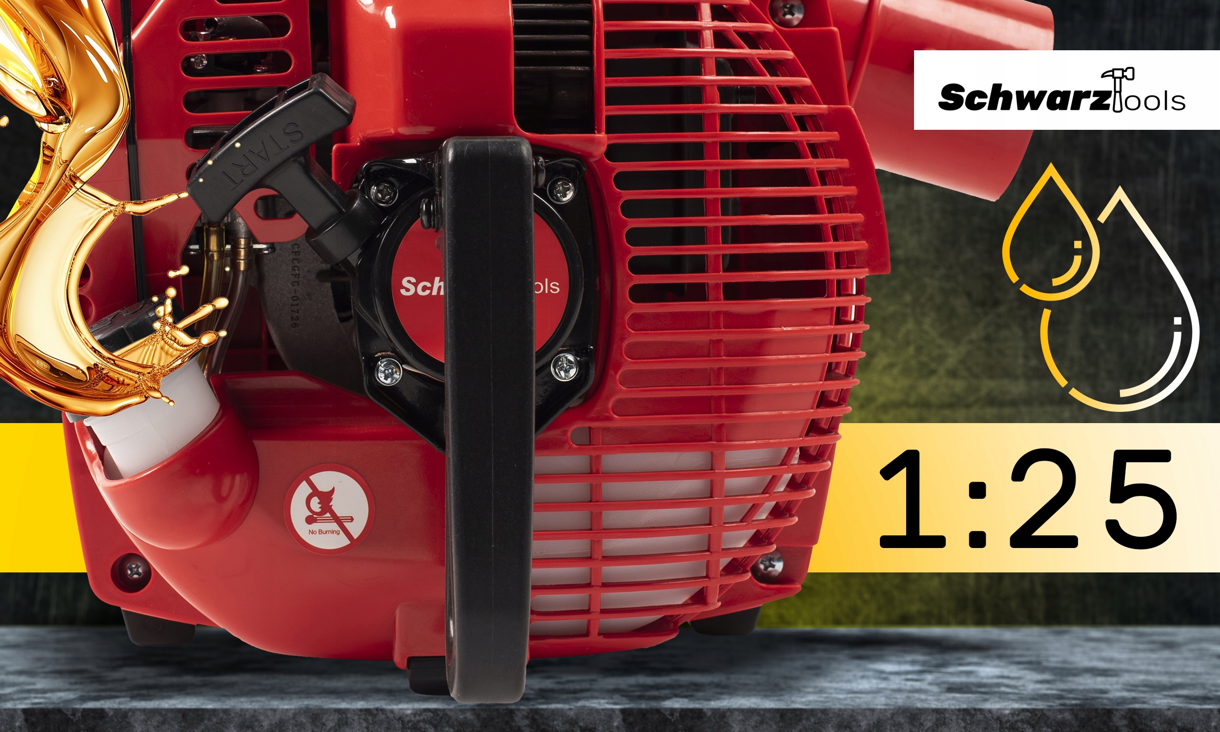 Наша повітродувка в іншій лізі. Завдяки якісним деталям двигун стабільно працює на суміші 1:25 - менше масла, більше потужності, немає диму. Це означає: