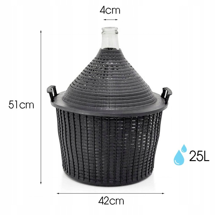 вузька -гляда скляна куля призначена для бродіння та зберігання алкогольних напоїв, таких як: вино, пиво, дистилят, настоянки, соки та інші рідини. пластиковий, знімний корпус дозволяє ретельно мити повітряну кулю, виконуючи функцію захисту від скла від синців. Скло, з якого виготовляються повітряні кулі, - це натрієве скло (єдиний алкоголь) з усіма схваленнями, які дозволяють контактувати з їжею. Це продукт одного з найкращих італійських сталевих робіт.
