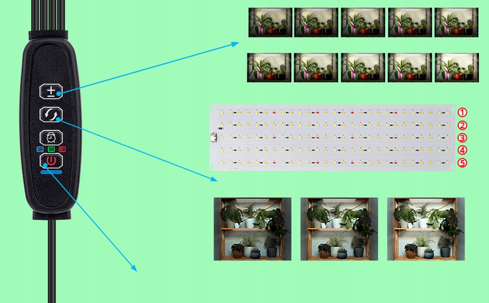【Функція 24-годинного циклу таймера】 світлодіодна лампа для вирощування рослин. За допомогою одного натискання кнопки ви можете встановити 3/9/12-годинний таймер, завдяки якому лампа автоматично перейде на рослини, що освітлюють наступного дня. Лампа імітує цілодобовий цикл сонячного світла і проста у використанні. Він має пряме електропостачання, тому вам не доведеться турбуватися про рослини, що ростуть під час ділових поїздок чи свят.
