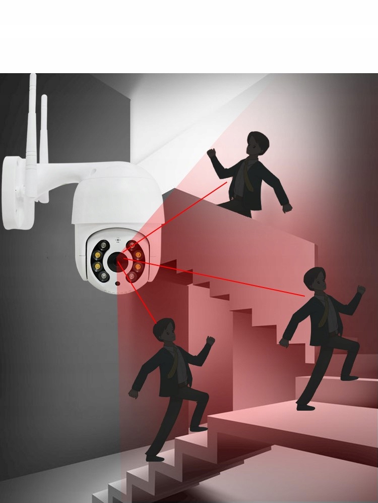 Автоматично вмикаються білий світло після виявлення руху перед камерою.