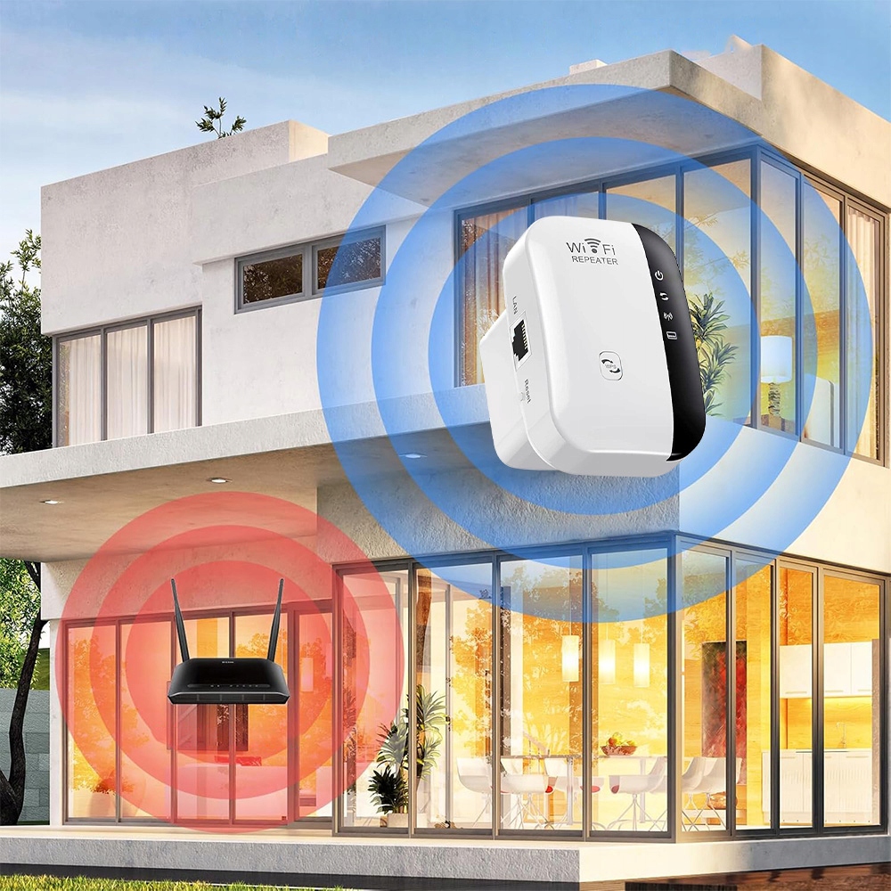 підсилювача Wi -Fi з покриттям до 5000 квадратних футів із вдосконаленим центральним підрозділом та потужними мікросхемами нового покоління можуть краще розширити бездротові сигнали до жорстких -реєстраційних областей.