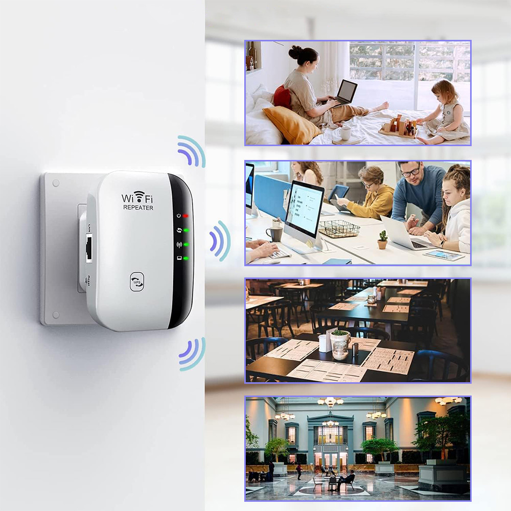 Цей підсилювач Wi -Fi був перевірений і сумісний з 99% маршрутизаторами на ринку і може використовуватися з будь -яким стандартним маршрутизатором або воротами. Сервіс поширювався на будь-який пристрій, такі як iOS, Android пристрої, пристрої Samsung, Echo / Alexa, ПК, PlayStation пристрої, інтелектуальні плагіни тощо. Відчуйте найбільш стабільну швидкість Wi-Fi, використовуючи кабель Ethernet для маршрутизатора, без проблем із зменшенням швидкості Wi-Fi та насолоджуйтесь плавною швидкістю Wi-Fi в будь-якому місці вдома.