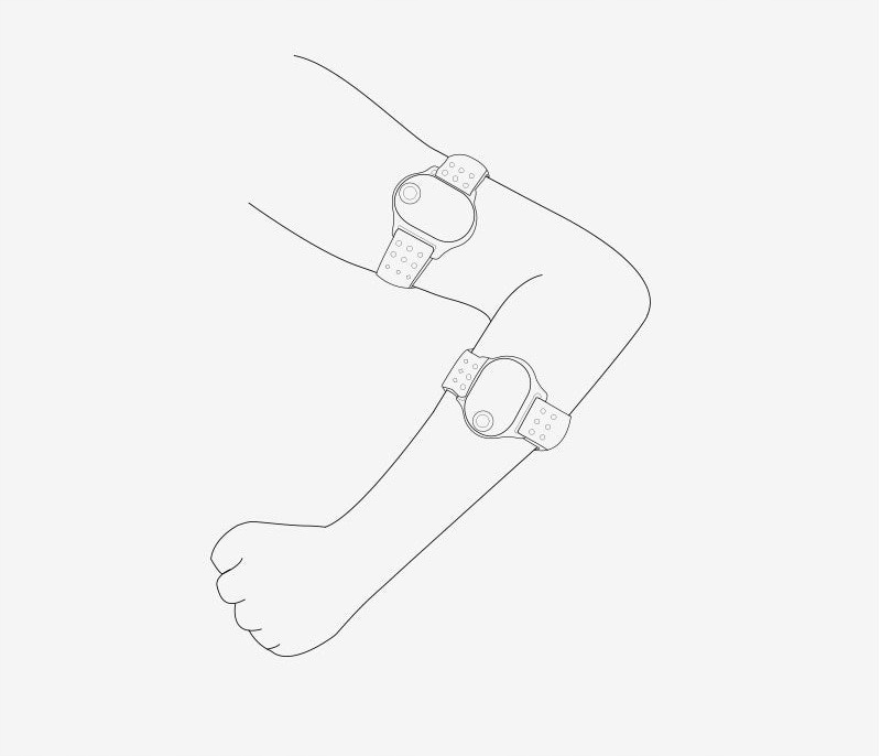 Монітор пульсу можна носити на обох руках. Типове положення носіння – це плече та зап’ястя, див. нижче.