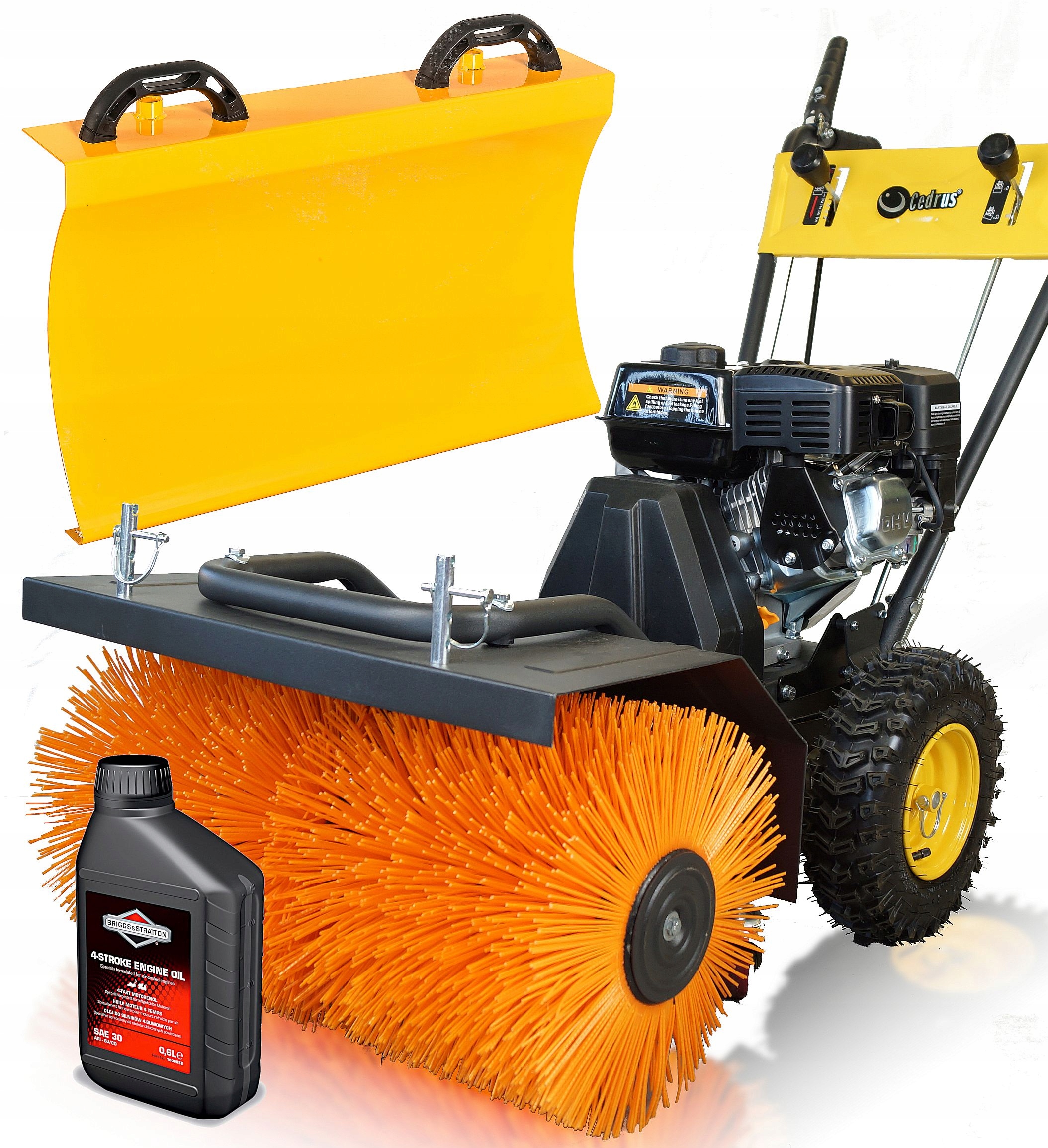 Додаткові аксесуари, які дозволять вам використовувати бензинову підмітально-прибиральну машину Cedrus цілий рік, включають кошик і снігоприбиральна машина.