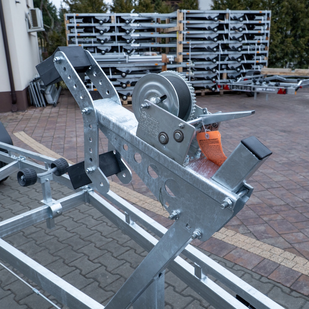 гальований трейлер для łódź до 22 ". Фокус у V -укладаному розтяжці та дуже хороших властивостях водіння. Валики найвищої якості, які знижують ризик пошкодження корпусу човна. Наховна задня колиска та регульовані подвійні бічні рулони полегшують човен. Вірестова шасі для довговічності та стійкості вашого причепа. Електричні кабелі повністю приховані та захищені всередині шасі причепа. Водонепроникні підшипники коліс забезпечують більш тривалий період використання. Вежа лебідки та переможця легко регулюється, щоб вони могли адаптуватися до вашого човна. Башта лебідки також оснащена додатковим захисним кабелем для використання під час транспортування Лодзі на причіп. Легка розбирання освітлювальної панелі з швидким випуском для легкого завантаження та вивантаження човна у воду.