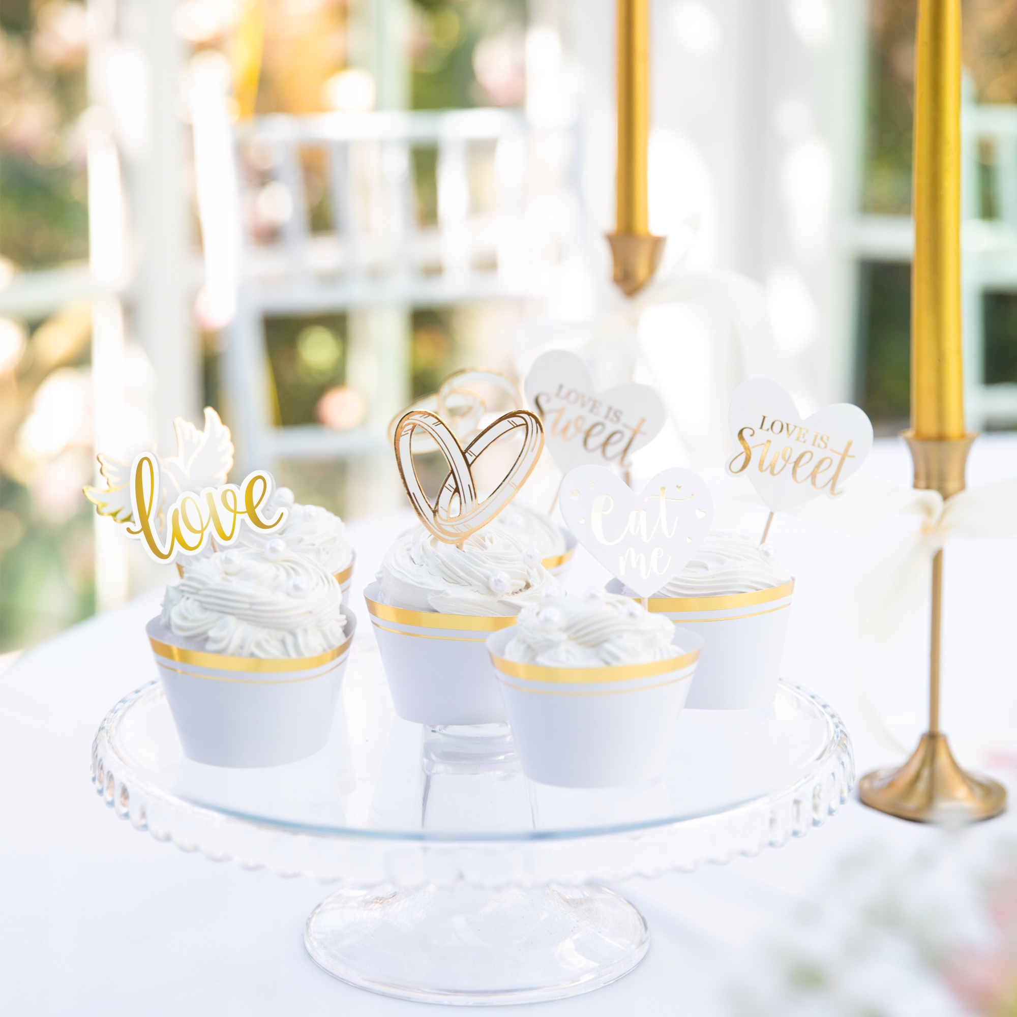 Запропонований весільний топпер був зроблений з паперу в елегантному білому та золотих кольорах, який прекрасно ковзає, додаючи ексклюзивності торту. Вказані дерев’яні палички змушують гаджет легко застряг у кожній випічці і стійко розміщується
