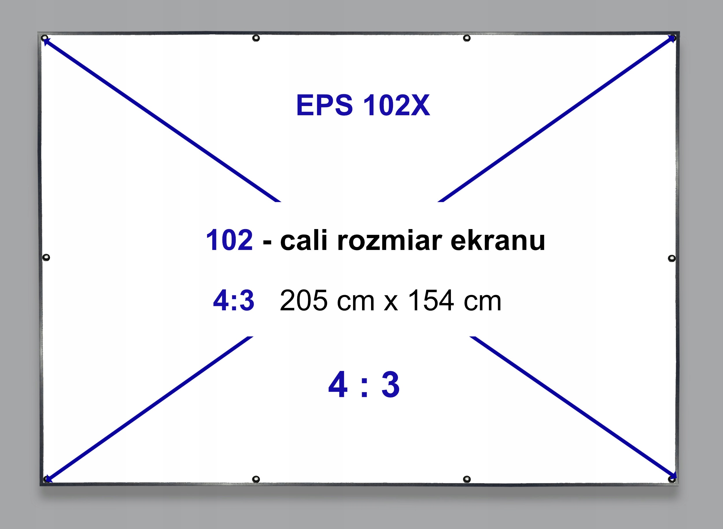 Екран виготовляється в Польщі з високоякісної поліестерової тканини, що забезпечує високу контрастність. , яскравість і кут огляду. Ми пропонуємо шість розмірів цього типу екрану; 125 дюймів, 105 дюймів, 102 дюйми, 75 дюймів, 72 дюйми та 62 дюйми. На цьому аукціоні екран має діагональ 102" (розмір відображеного зображення 205 см x 154 см).