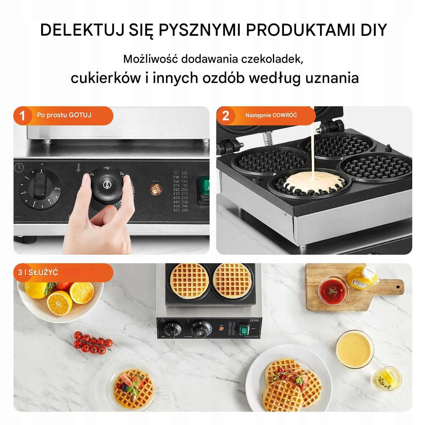 Професійне електричне вафельне залізо потужністю 1750 Вт - це відмінний пристрій для гастрономії, а також для домашнього використання. Це дозволяє готувати чотири хрусткі та пухнасті вафлі одночасно , що робить його чудовим у кафе, ресторанах, готелях та на заходах громадського харчування. 4