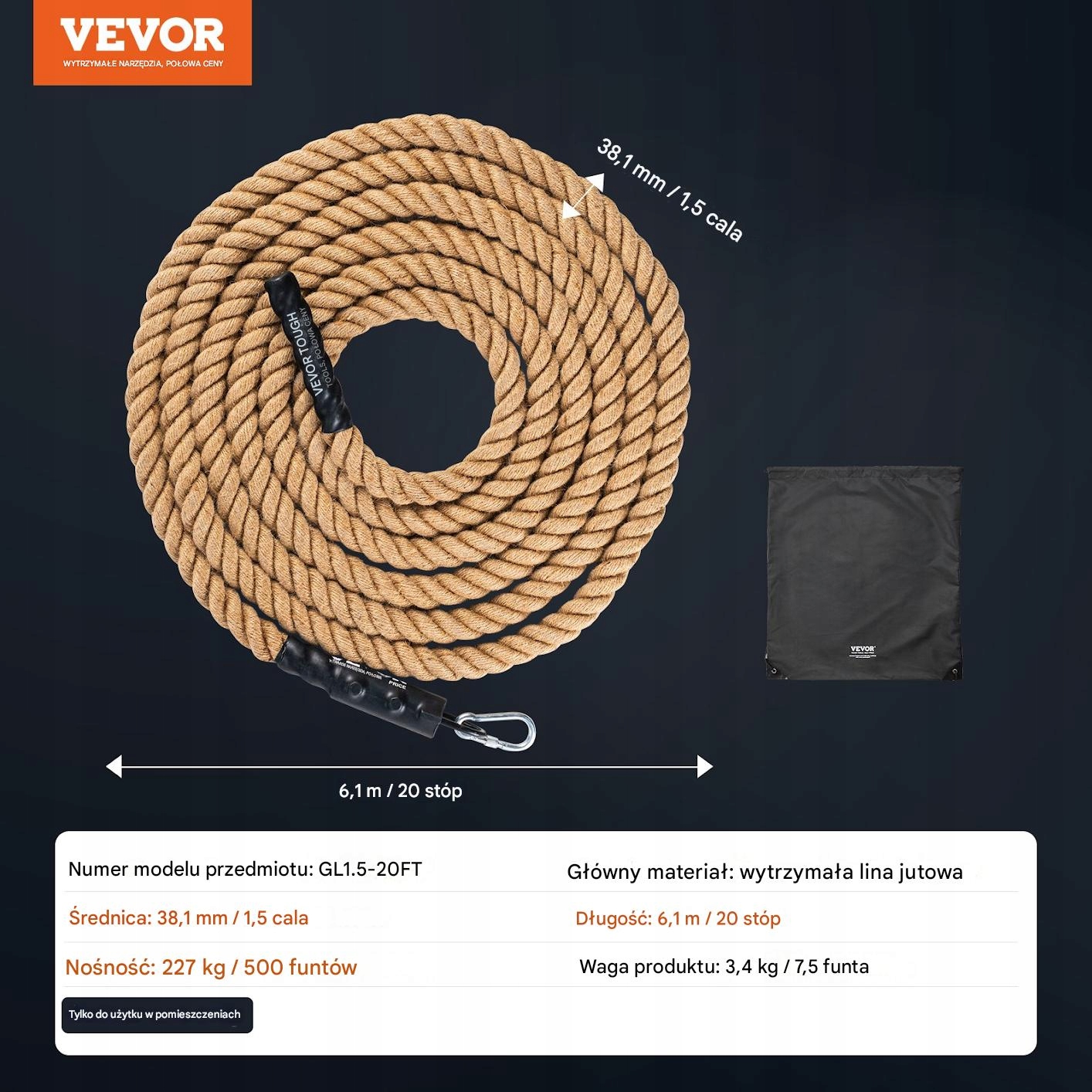 - ✅ Висока міцність: лінія, виготовлена з товстого джуту діаметром 38,1 мм , перевірена силою розтягування 15000 n , ємністю до 227 кг .