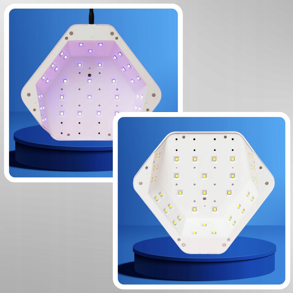 30 світлодіодів, розташованих під ідеальним кутом, забезпечують рівне та інтенсивне світло, що прискорює процес без ризику перегріву.