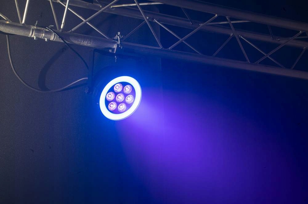 Професійне барвисте світлодіод від DMX512. Він містить регульовані кронштейни, що дозволяють положенню світла на землі, кріпиться на стіні або підвісці на пандусі. Світло містить віддалений пульт дистанційного керування ІР. - 7x 6W RGBW LED + 48X SMD Світло.