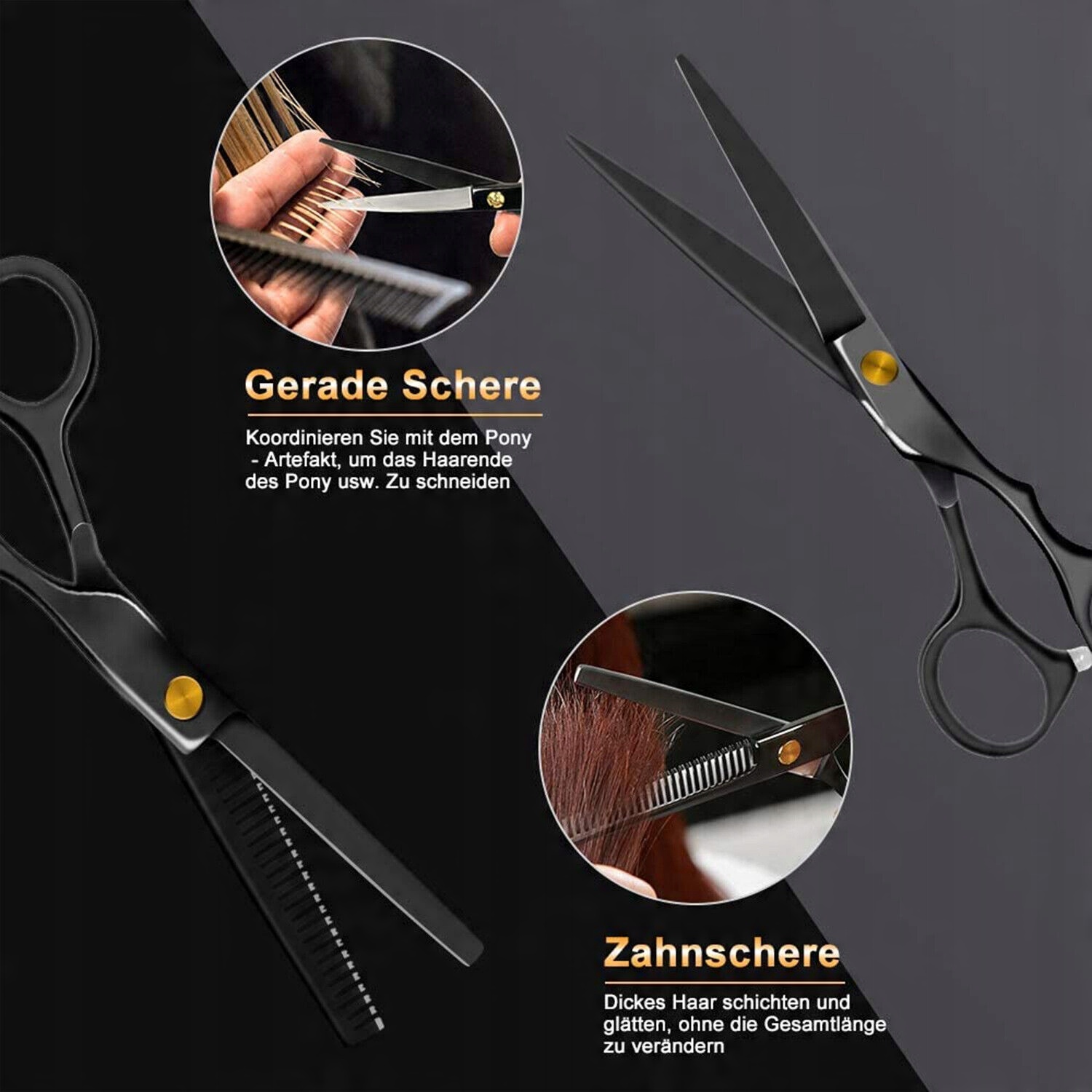 Універсальні перукарні ножиці: Завдяки цьому набору ви можете стригти волосся вдома в будь -який час. Ви можете обрізати волосся, бороду та чубчик, ви також можете легко стригти волосся на тваринах. Ці різкі ножиці для витончення волосся безпечніші та простіші у використанні у чоловіків, жінок, людей похилого віку, дітей та немовлят. Перукарні ножиці були розроблені в найсучаснішому стилі, завдяки якому вони підходять як для професійного, так і для особистого використання.