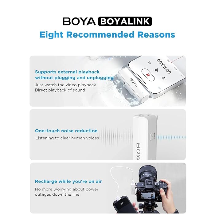 - стабільна передача на відстані 100 м : Boyalink-W забезпечує стабільне з'єднання на відстані до 100 м, що робить його надійним вибором для записів у великих просторах. Завдяки цьому це буде ідеально під час інтерв'ю на свіжому повітрі або в прямому ефірі. Довгострокове використання та мирна робота, не боячись надійності обладнання. в різних умовах. Перевірте зараз і насолоджуйтесь ідеальним звуком!