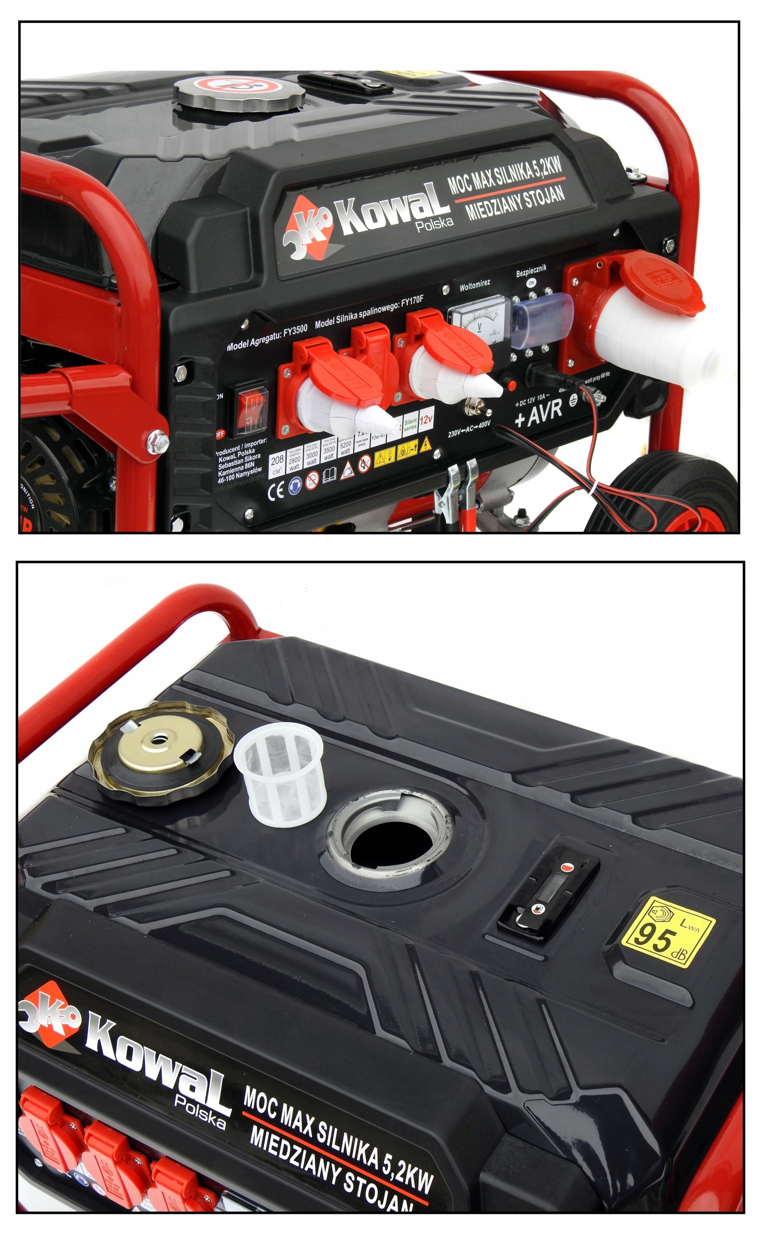 Генератори KowaL Polska характеризуються надійністю, неперевершеними параметрами та оснащені багатьма системами, які гарантують найкращі параметри потужності та якість електроенергії, зберігаючи мінімально можливе згоряння. За це відповідає статор, який використовує додаткову схему, яка вирівнює потужність і напругу між фазами, і інтелектуальний дросель, який працює автоматично і підтримує постійну швидкість незалежно від навантаження. Пристрій додатково оснащений перемикачем напруги 230/400 В.