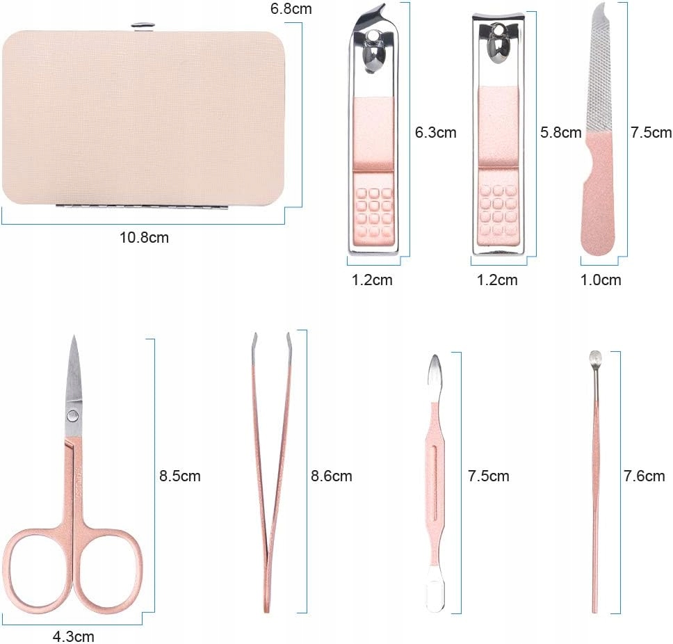 - ✅ Набір професійної допомоги: Уракт -набір складається з 8 інструментів, включаючи цвях, файл, очищувач, очищувач, ножиці для брів, вушних хлопців та пінцетів. Він пропонує всебічні руки та брови. Він ідеально підходить для повсякденного використання та подорожей.