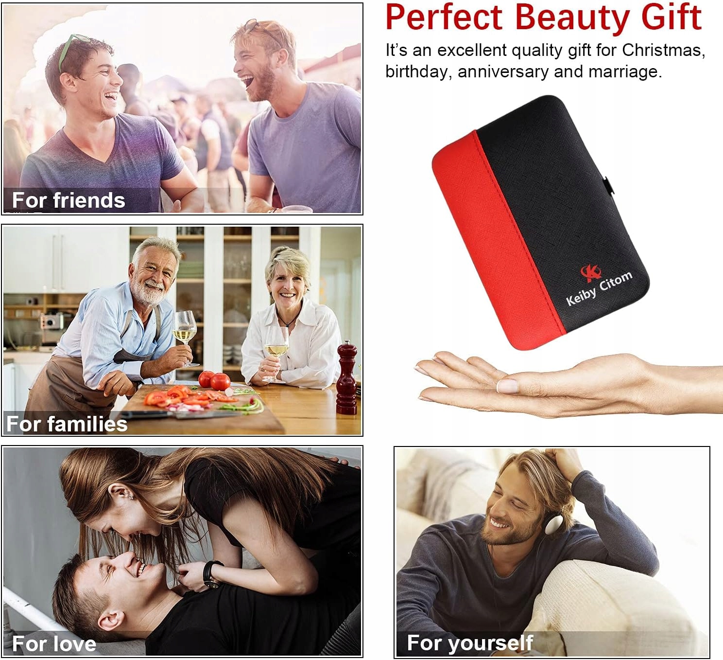 - Модна шкіра: виготовлена з поліуретанової шкіри. матеріал, м'який і міцний. Чорні кусачки для нігтів зберігаються в чорно-червоному шкіряному футлярі, щоб інструменти для манікюру не ковзали й не губилися.