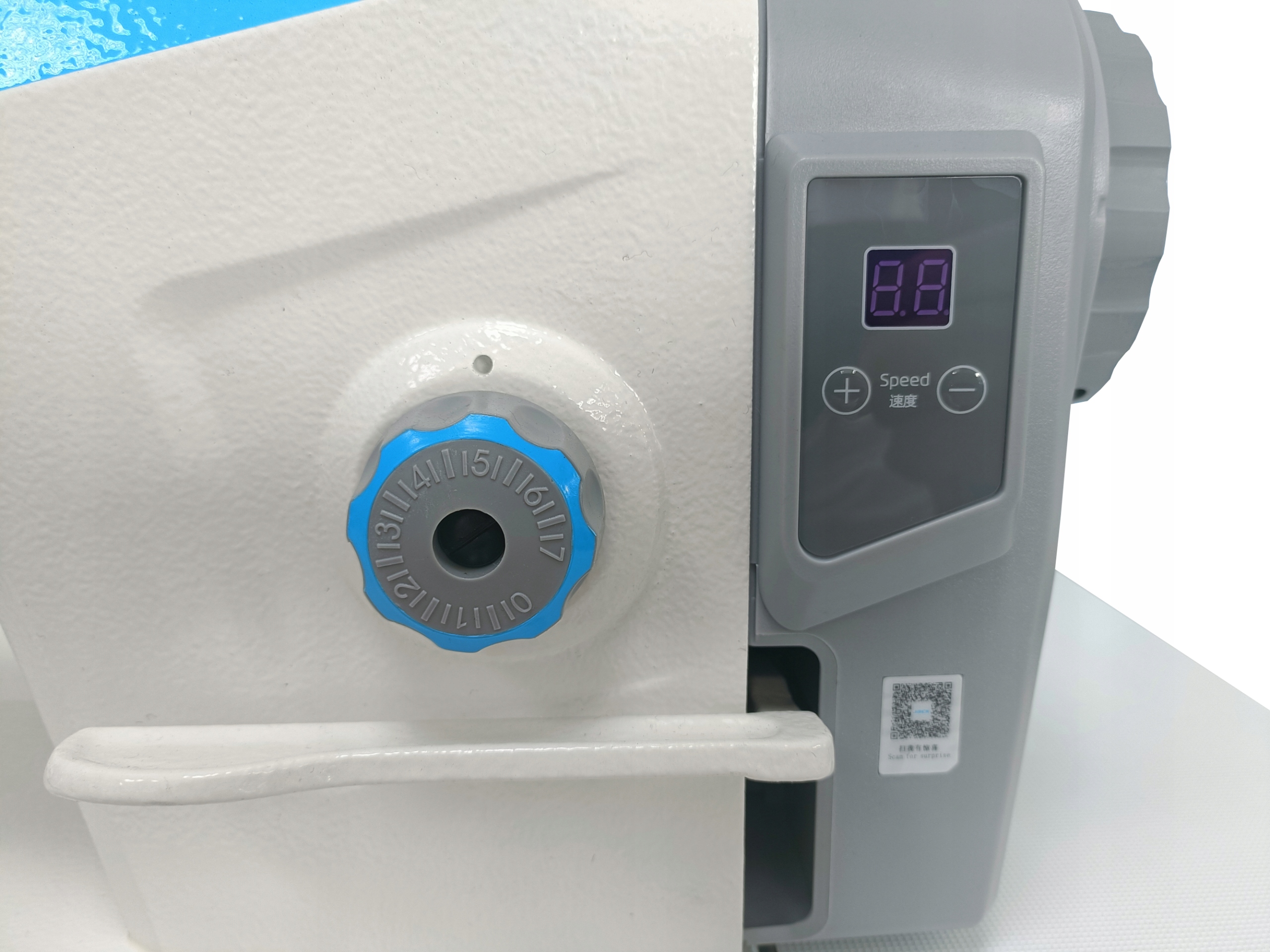 ◾ Професійна швейна машина з нижньою подачею, призначена для важкого пошиття, готова до негайної роботи. Машина прямокутного стібка оснащена дуже простою у використанні панеллю керування, яка дозволяє легко програмувати позиціонування голки та швидкість двигуна.