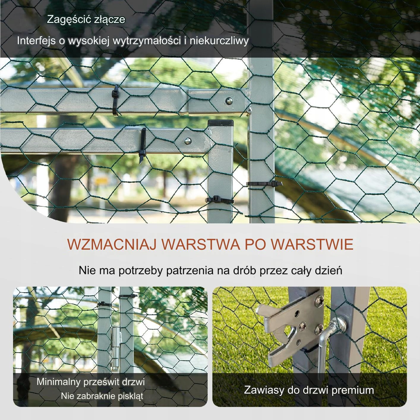 - Kurnik, виготовлений з міцного металевого сплаву та оснащений захисною шестикутною сіткою, гарантує довговічність та безпеку.