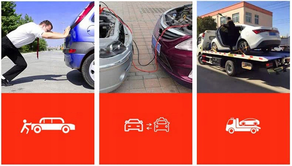 ⚡Червоний і чорний роз’єм автомобільного акумулятора > два кінці кабелю до джерела живлення стартера > заведіть автомобіль. Заздалегідь перевірте, чи правильно ви встановили напругу на пристрої. Зазвичай це працює при напрузі 12 В.