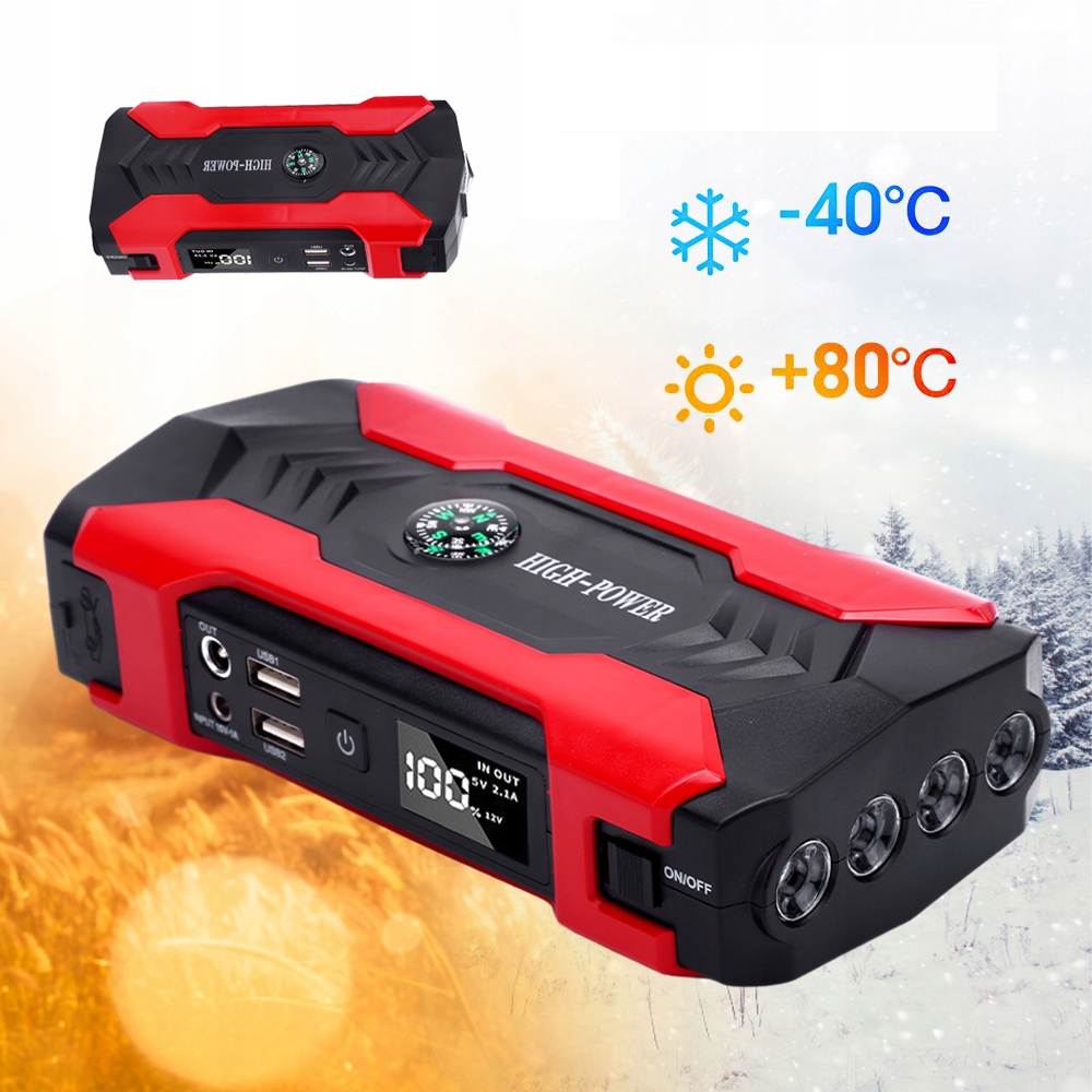 - Переваги: Автомобільний молоток безпеки, дисплей залишкової потужності, дисплей вихідної напруги, аварійне освітлення, компас.