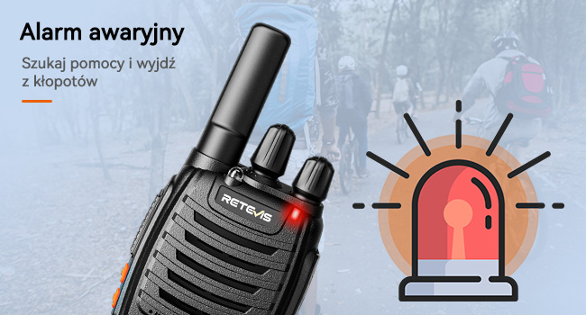 Якщо ви випадково поранилися під час кемпінгу чи верхової їзди, натисніть бічну клавішу 1, щоб увімкнути функцію будильника. Рація надішле звуковий сигнал, щоб нагадати вашим друзям про те, щоб вони врятувалися від неприємностей.
