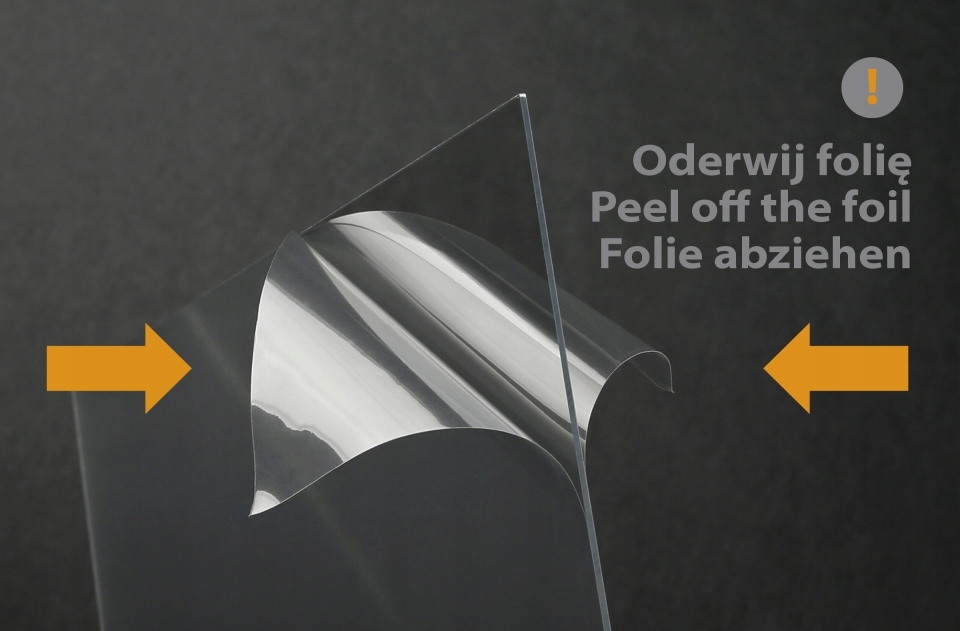 - безбарвний полістирол, захищений плівкою з двох сторін