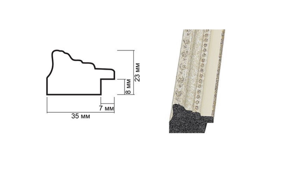 Рамка з полістиролу стійка до вологи та цвілі, не містить формальдегіду.