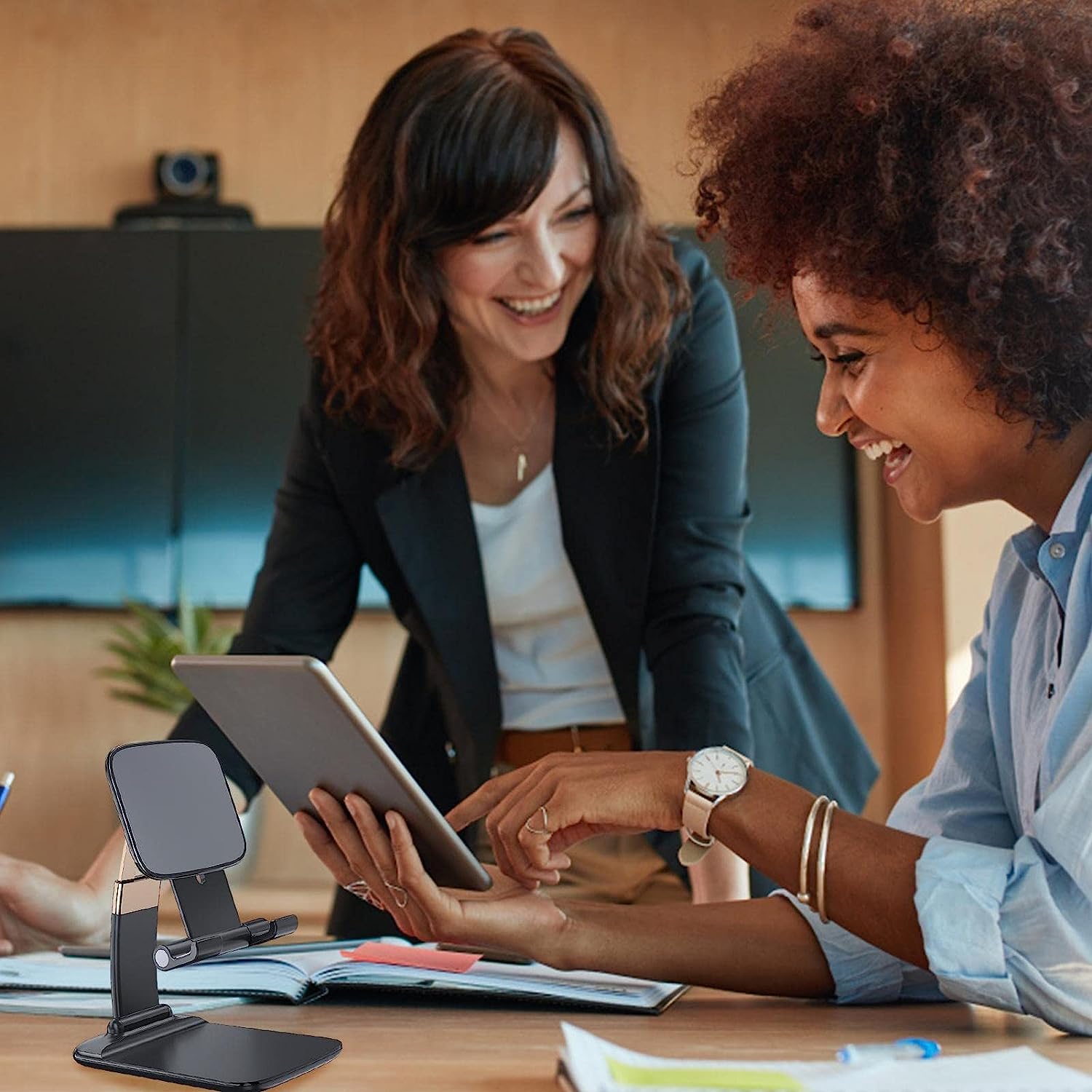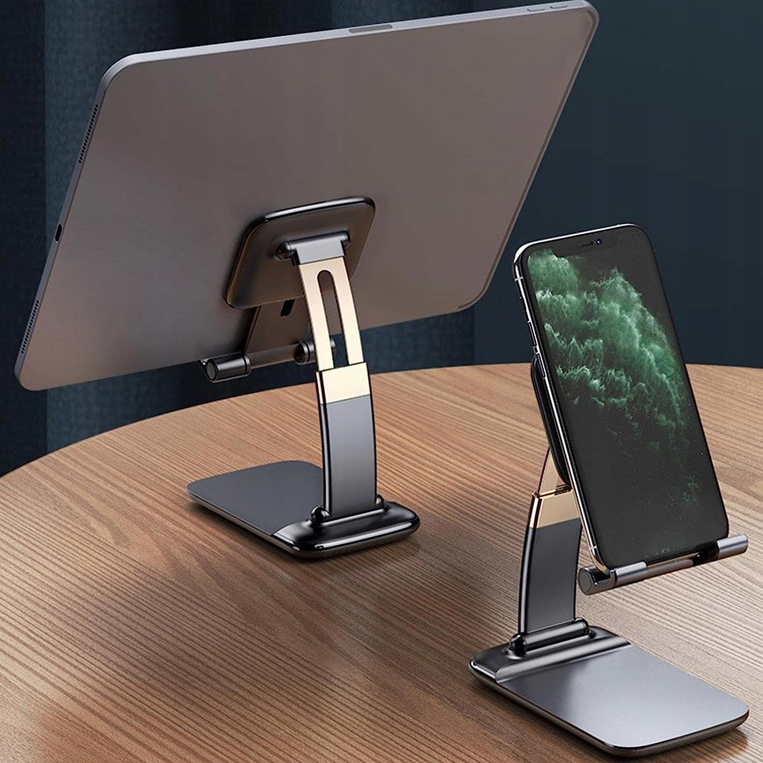 Сучасна, регульована чорна підставка -це практичне доповнення, яке полегшує використання телефону та планшета в будь-якій ситуації.