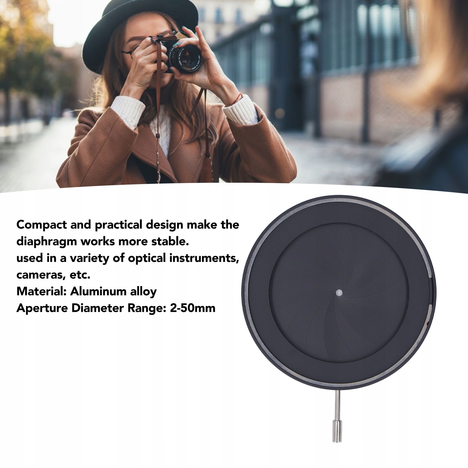 5. довговічною: регульована діафрагма з діафрагми Iris виготовлена з сплаву алюмінієвого сплаву, яка міцна, з довгим життям. Його можна багато разів використовувати багато разів, забезпечуючи хороший досвід користувачів.