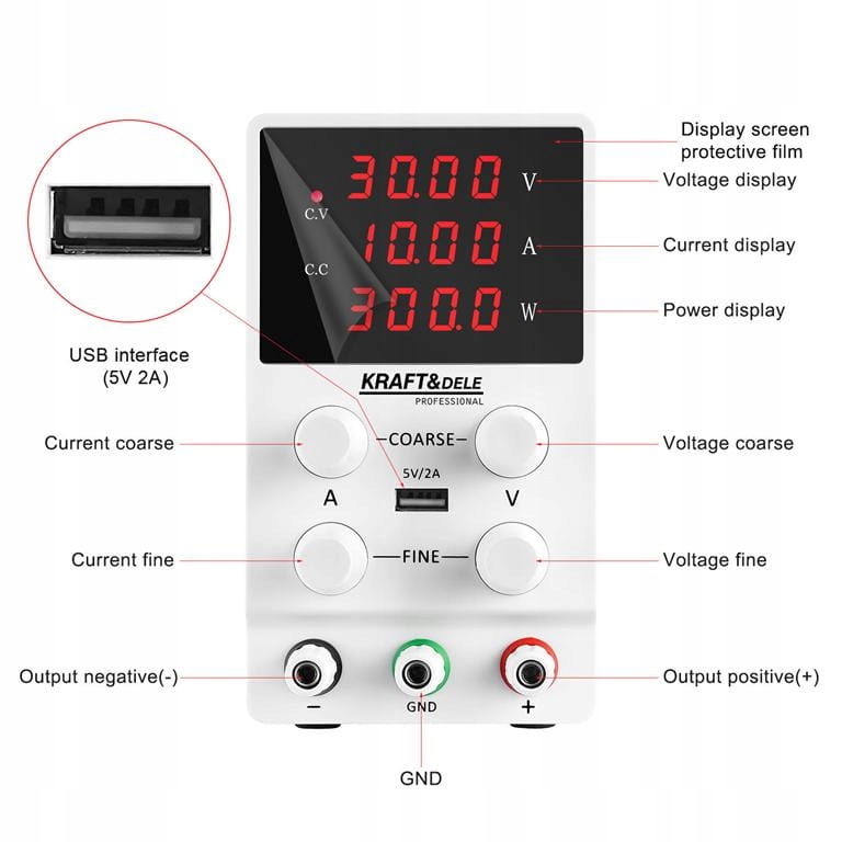 Лабораторне джерело живлення 0-10a твердість Kraft & Dele KD5870
