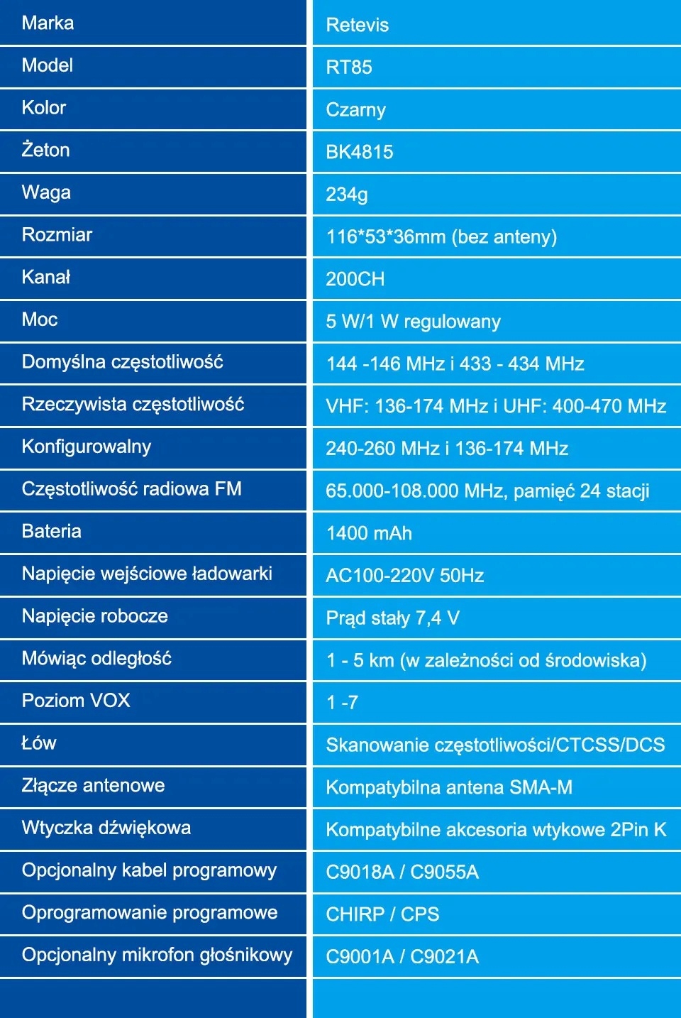 Retevis rt85 vhf uhf 5w радіо