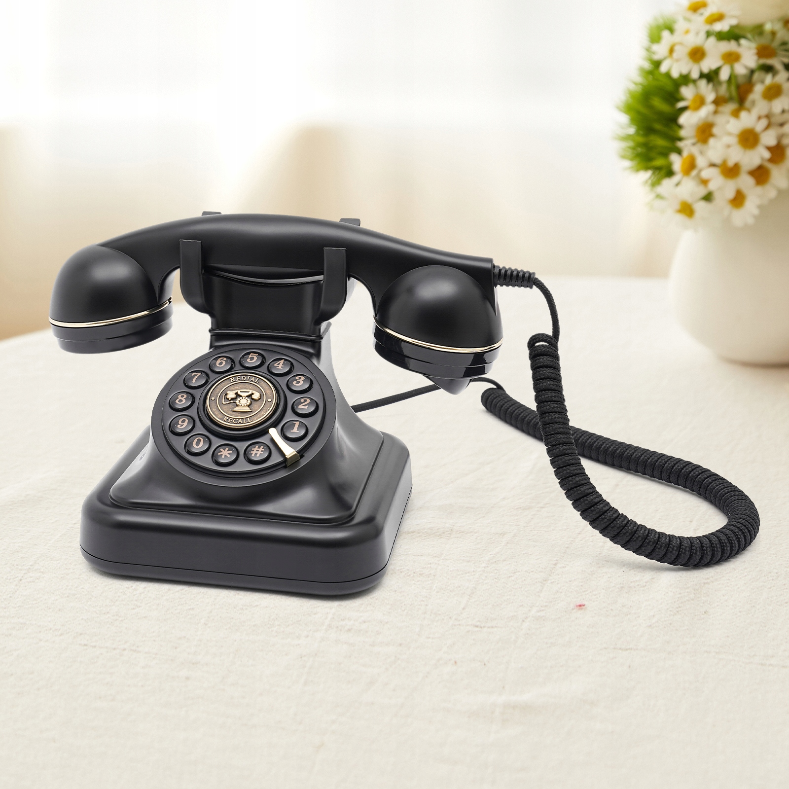 - Зручна ручка: Управляюча ергономічна ручка, яка зручна для зберігання. B> Телефонний кабель з тканинами: не просто у використанні та оснащений функціями. База: Велика база (5,7 * 5,7 дюйма) забезпечує можливість підтримки та усунення або коливання продукту під час звичайного використання. Числовий ключ для підозрюваного та легшого вибору, що визначає традиційний стиль без втрати модифікації. Продукт підходить для вітальні, спальні, шафи, кафе, офісу, готелю, школи, бару тощо. Може бути загроза, що виникає внаслідок зв’язку, який також може бути використаний як функція.