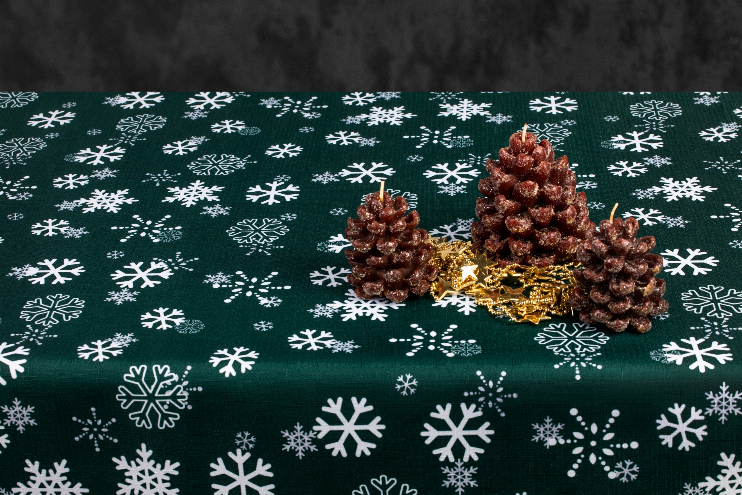 Скатертина плямостійка "Різдвяний СНІГ" - коло 130 см, зелена "пляшка"