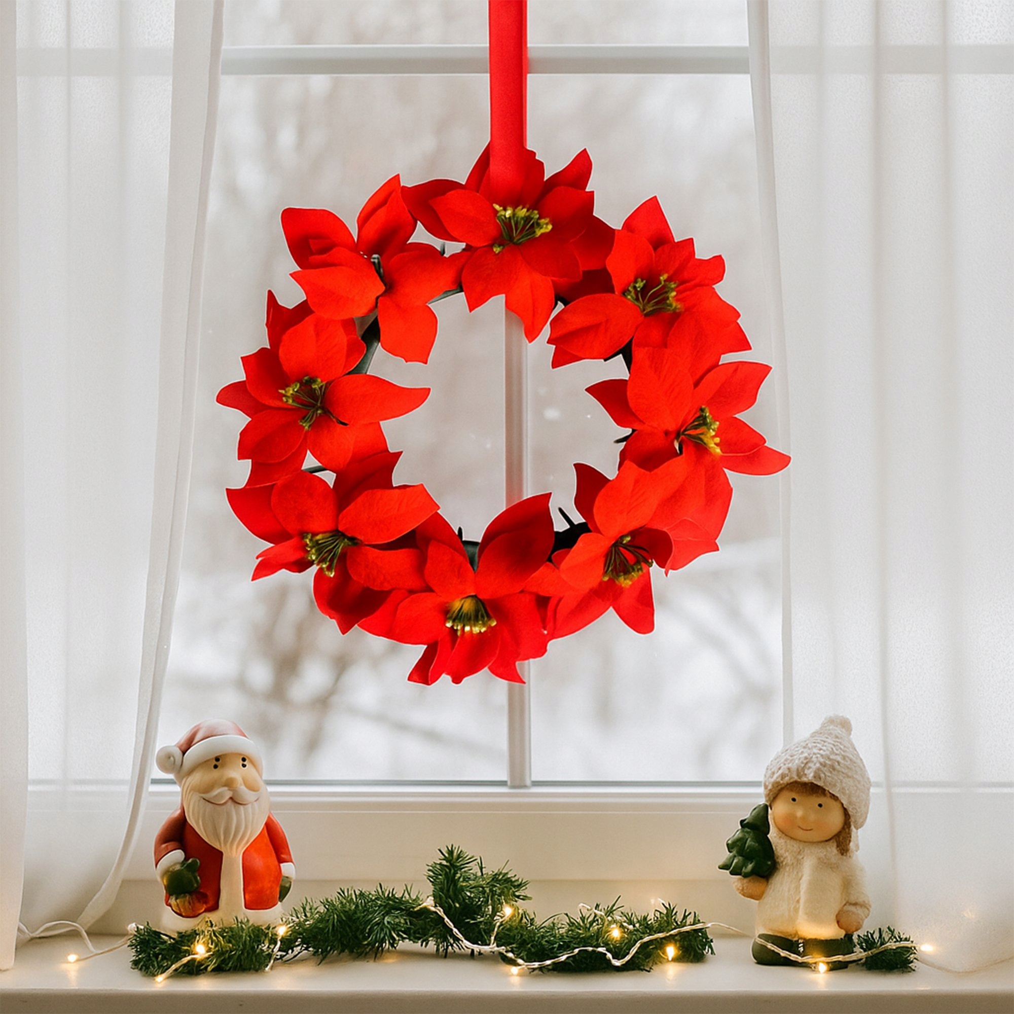 Внесіть неповторну атмосферу Різдва у свій інтер'єр завдяки гарному вінку з Віфлеємською зіркою. Це не тільки класична прикраса, а й символ новорічного тепла та елегантності. Делікатні, вишукані деталі та реалістичний вигляд роблять його прикрасою, повз яку ніхто не пройде байдужим. Ідеально підходить для дверей, столу або як частина більшої прикраси!