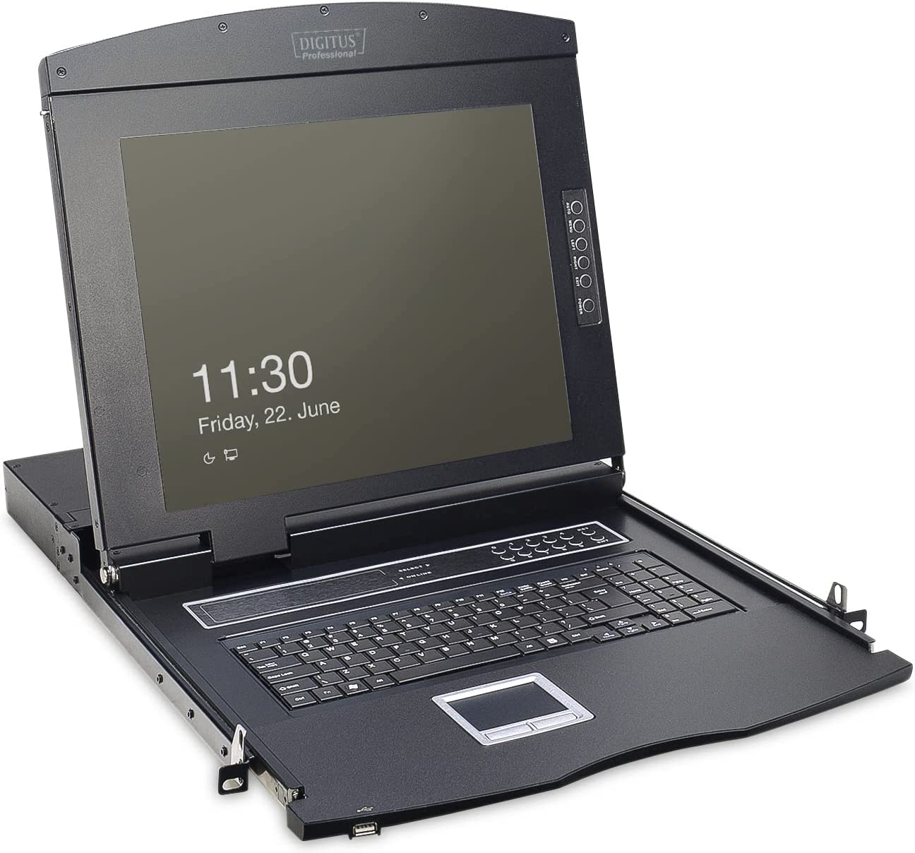 Модульна консоль Digitus DS-72210-1IT 17-дюймовий екран Джерело живлення Сенсорна панель 1-портовий модуль KVM Монтажні рейки