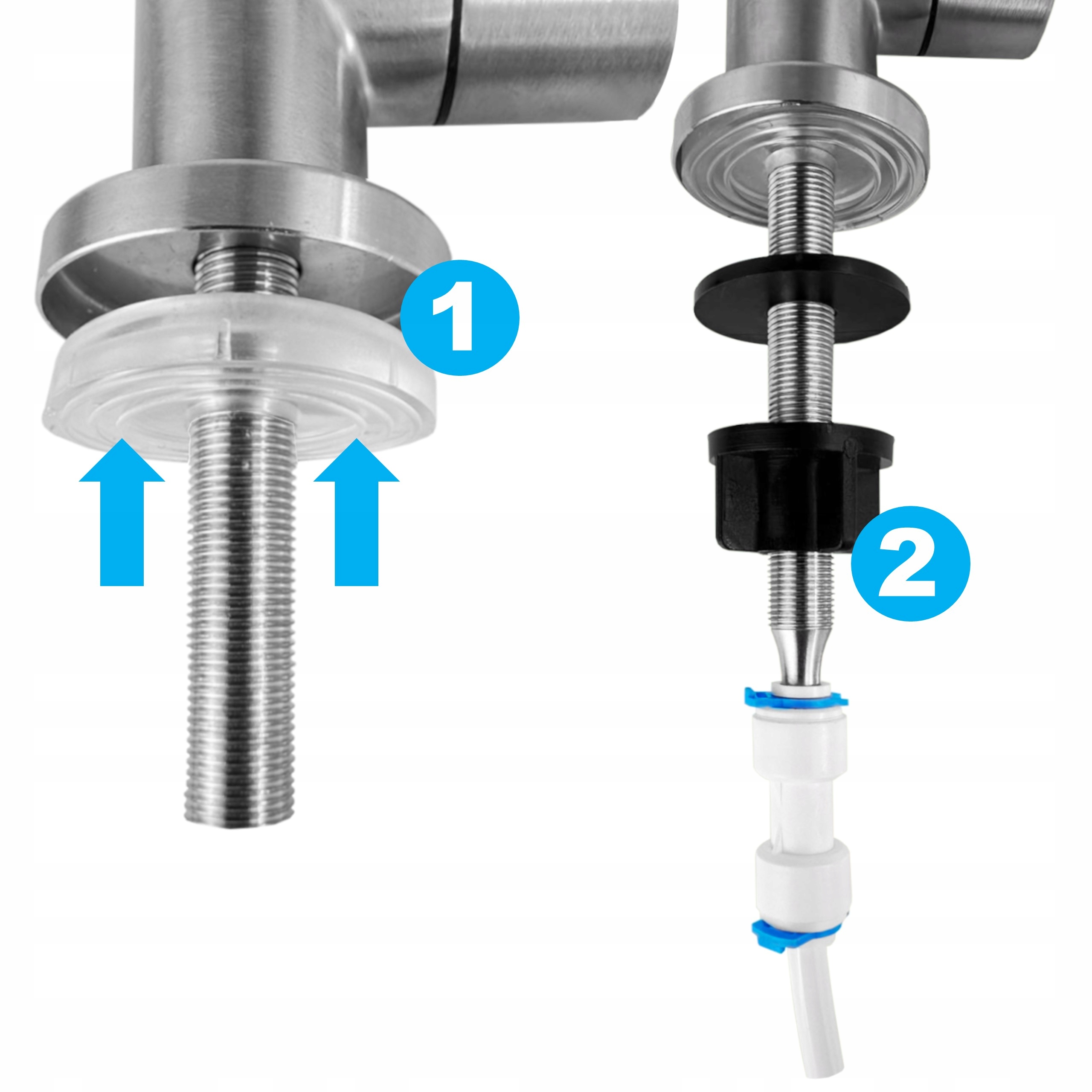 Інноваційна система затягування крана до раковини або стільниці за допомогою спеціального метелика дозволяє швидко встановити без необхідності інструментів. Це рішення, яке суттєво полегшує встановлення та мінімізує ризик помилок.