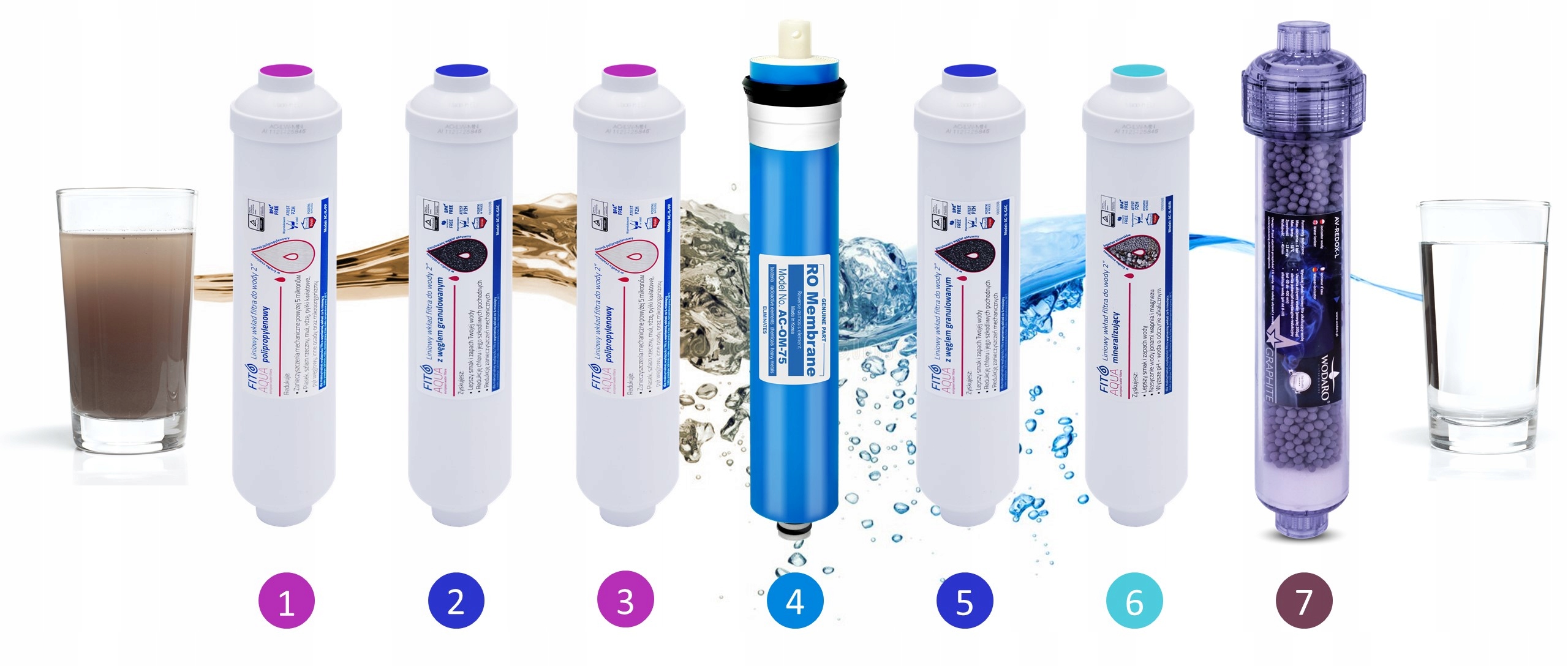 Мембрана виготовлена з мембрани, яка лише передає молекули води розміром приблизно 0,1 нанометра. Всі забруднення - хлор, фтор, промислові відходи, акумулятори, гриби, важкі метали, свинцевий, бром та багато інших - зупиняються та виводять стічними водами до дренажу каналізаційної системи. Фільтрація в кожному молекулярному фільтрі складається з трьох етапів: префільтрації, відповідальної за очищення води від більших механічних та органічних домішок, вона спрямована на захист мембрани від занадто швидкого зносу. Другий етап очищає осмотичною мембраною, третій - останній - це Постфільтрація, тобто повторне лікування води - надання кращого смаку, мінералізації або її затоплення.