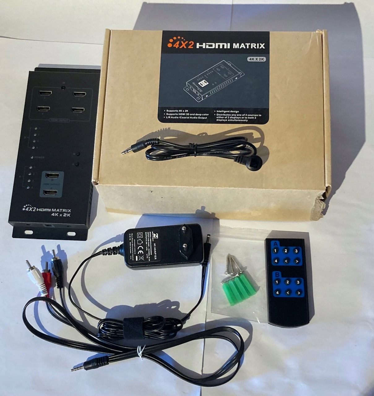 На аукціоні я продаю 4x2 HDMI Matrix Switch, який ідеально підходить для керування кількома джерелами HDMI і до двох екранів . Цей універсальний пристрій дозволяє підключати до чотирьох джерел HDMI до двох виходів і легко перемикатися між джерелами за допомогою пульта дистанційного керування або кнопок на корпусі.