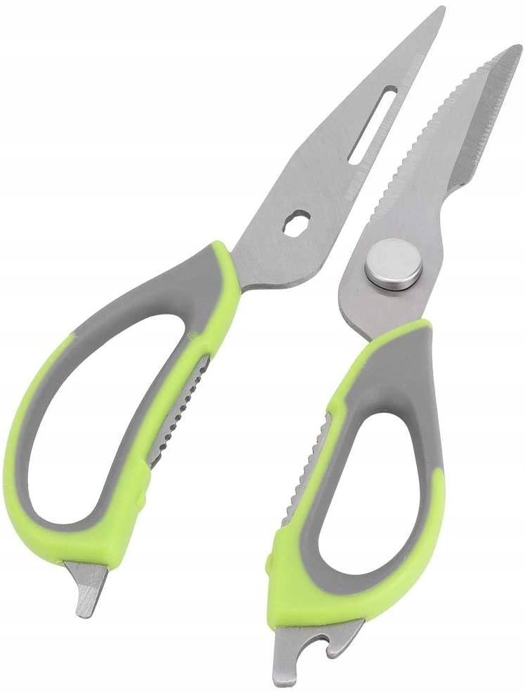 Кухонні мультиножиці - ідеальний інструмент, який замінить надлишок інших кухонних пристосувань на кухні. Ідеально підходить для птиці, риби, овочів та багатьох інших харчових продуктів. Додатково вони оснащені наконечником для відкривання пляшки. Мають ергономічну нековзку ручку. Спеціальний механізм дозволяє розібрати ножиці на дві частини, що значно полегшує чищення і дозволяє використовувати їх як ніж. Вони упаковані в практичний футляр із магнітом, який також дозволяє підвісити, щоб вони завжди були під рукою.