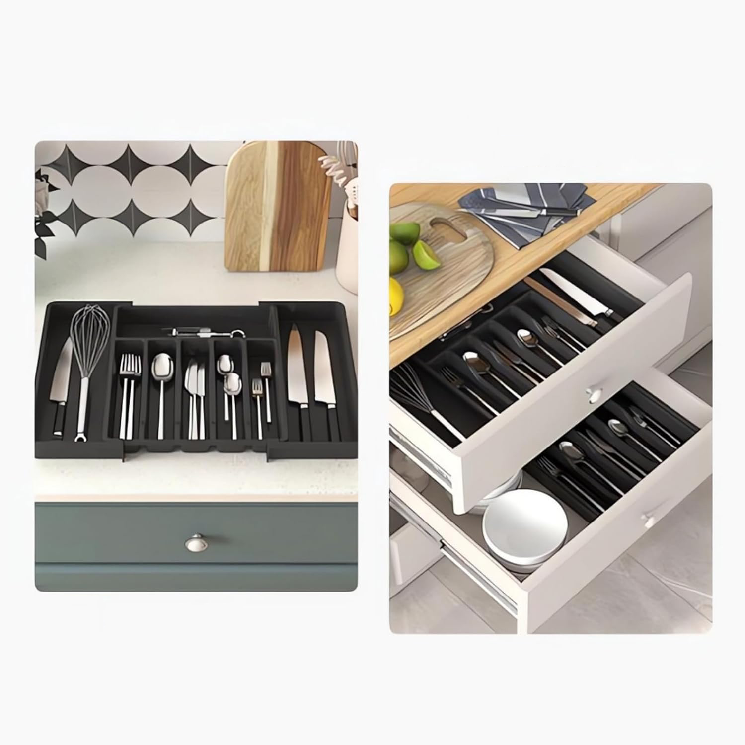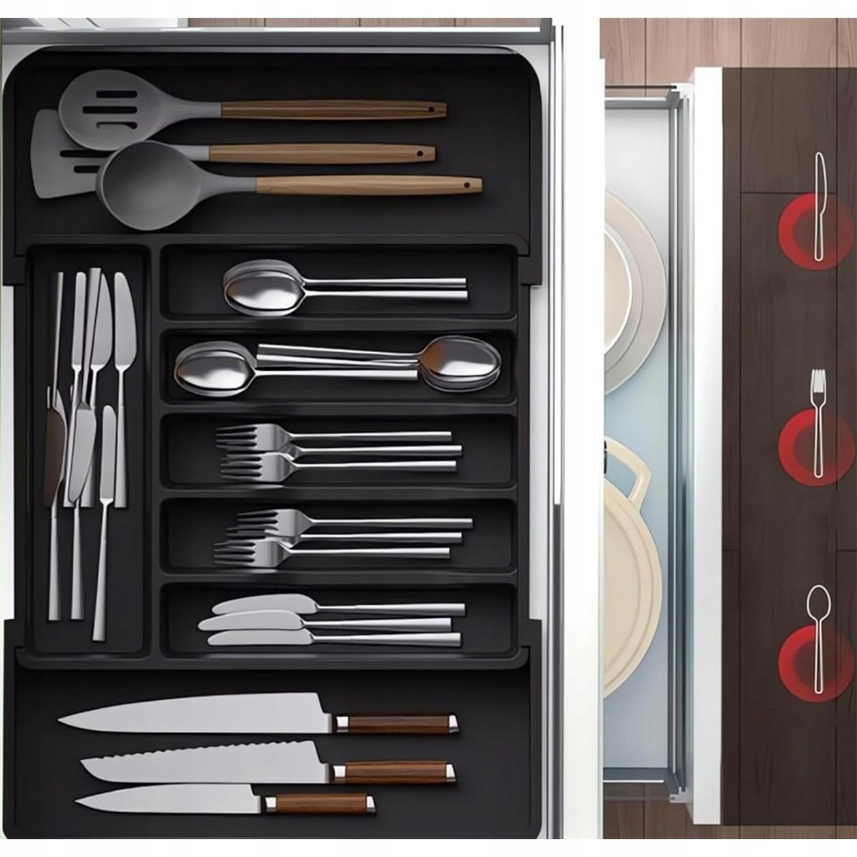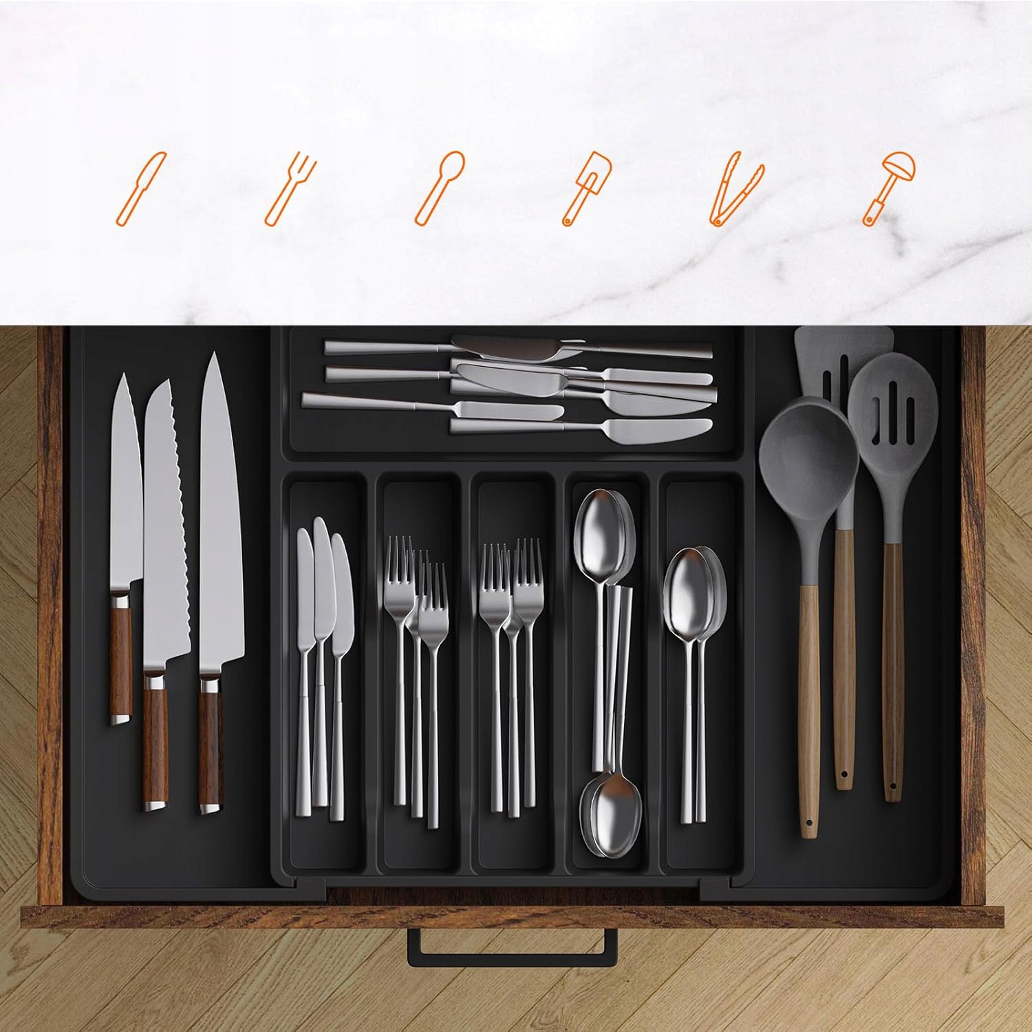 Розширюваний лоток для кухонного посуду на 8 відділень, місце для ложок