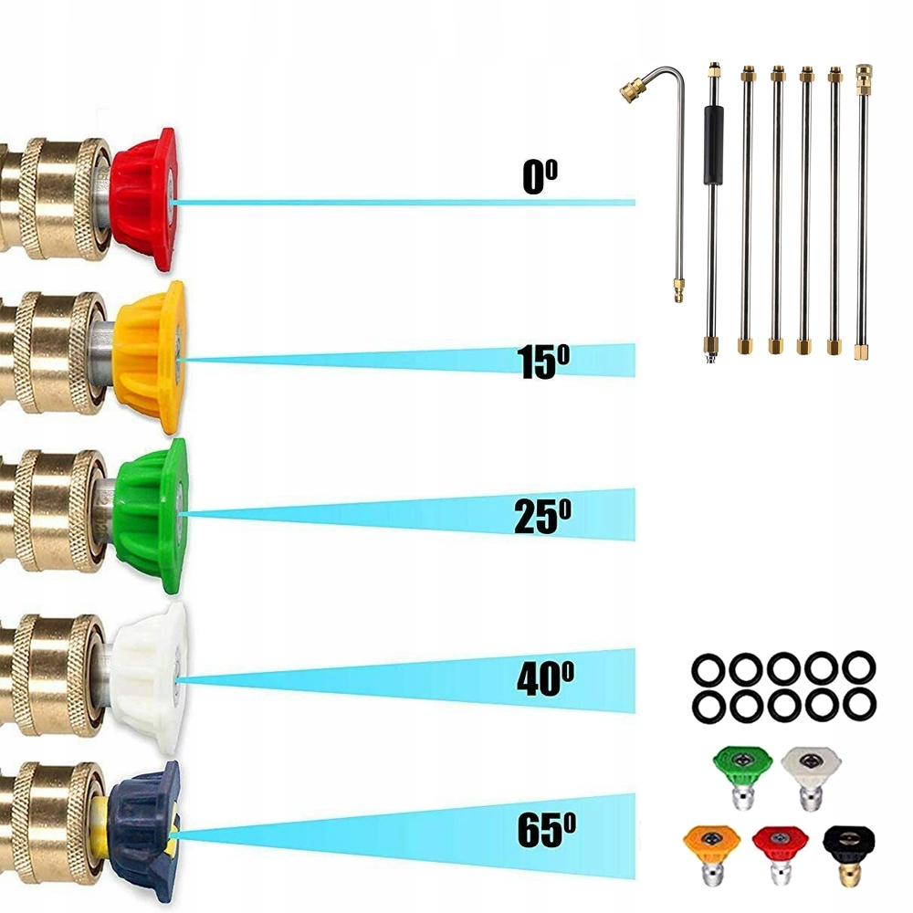 - Інструменти для очищення жолобів мають 5 високоякісних форсунок для багатьох застосувань. Мильні форсунки та форсунки 40, 25, 15 та 0 градусів. Різні розміри можна використовувати для будь -якого завдання з очищення!
