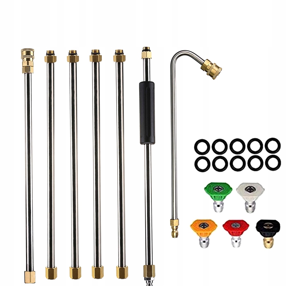 - У ньому 6 простих стрижнів і 1 вигнутий стрижень, жіночий високошвидкісний 1/4 дюйма, пінопласт, водяний мітла, очисний засіб для шасі, щітка для очищення поверхні, щітка для очищення, підвіска для очищення раковини. Ефективні, антикорозійні та антикорозійні, довговічні та тверді, використовуються тривалий час.