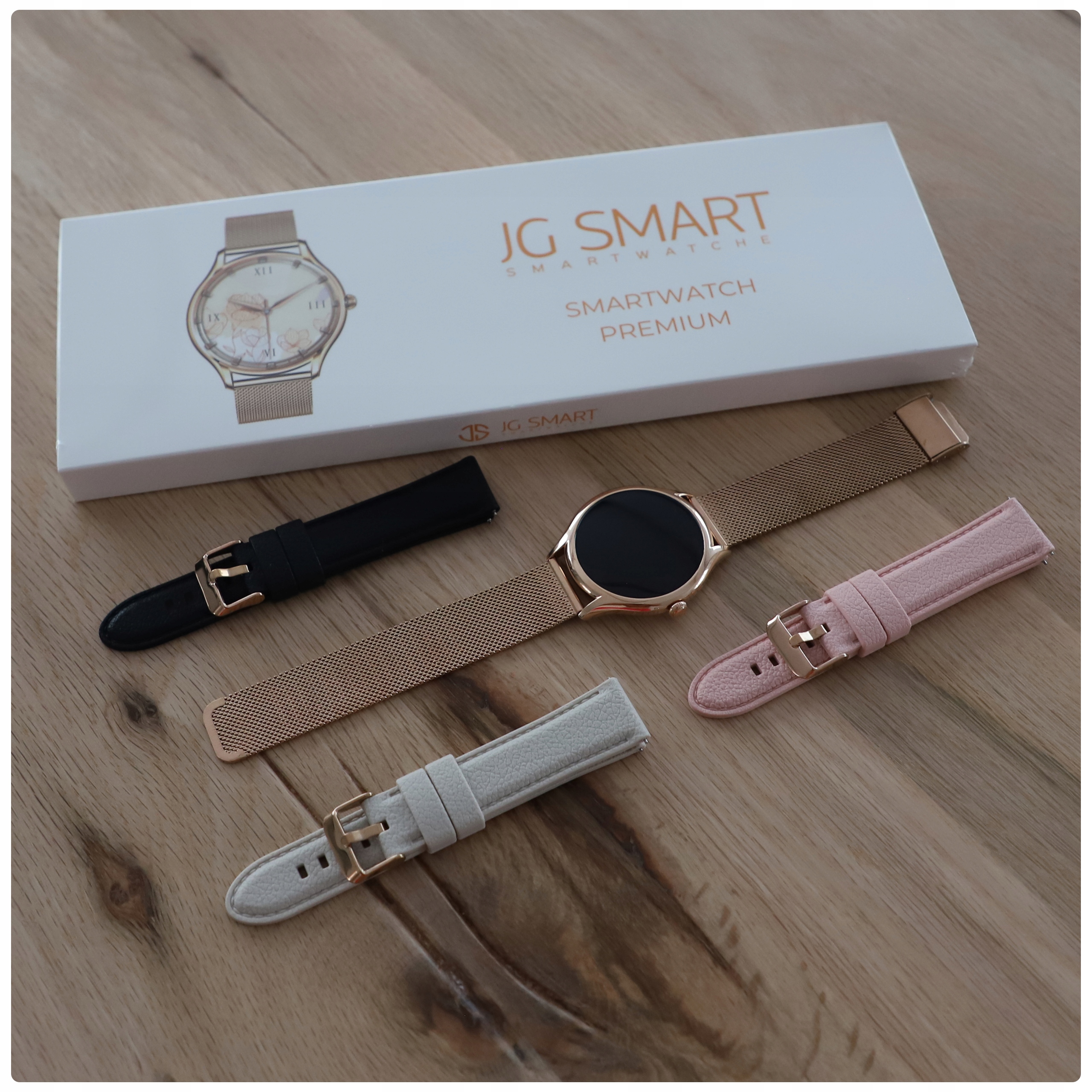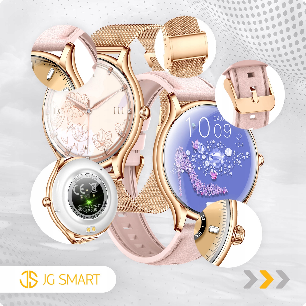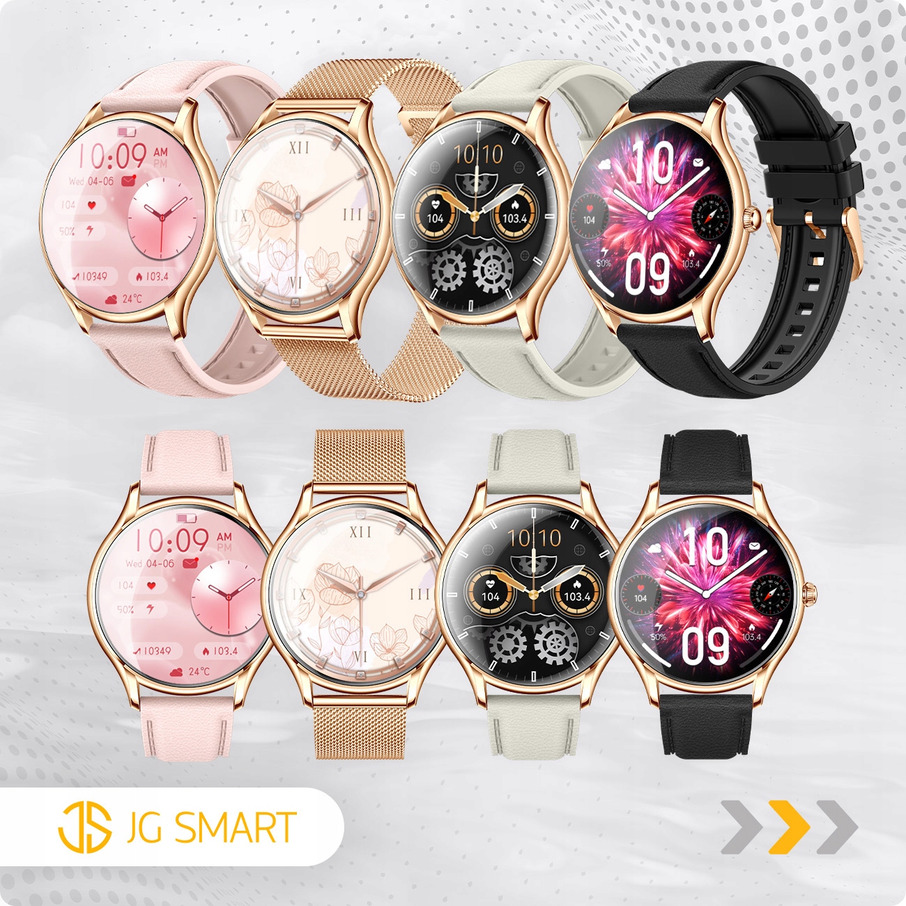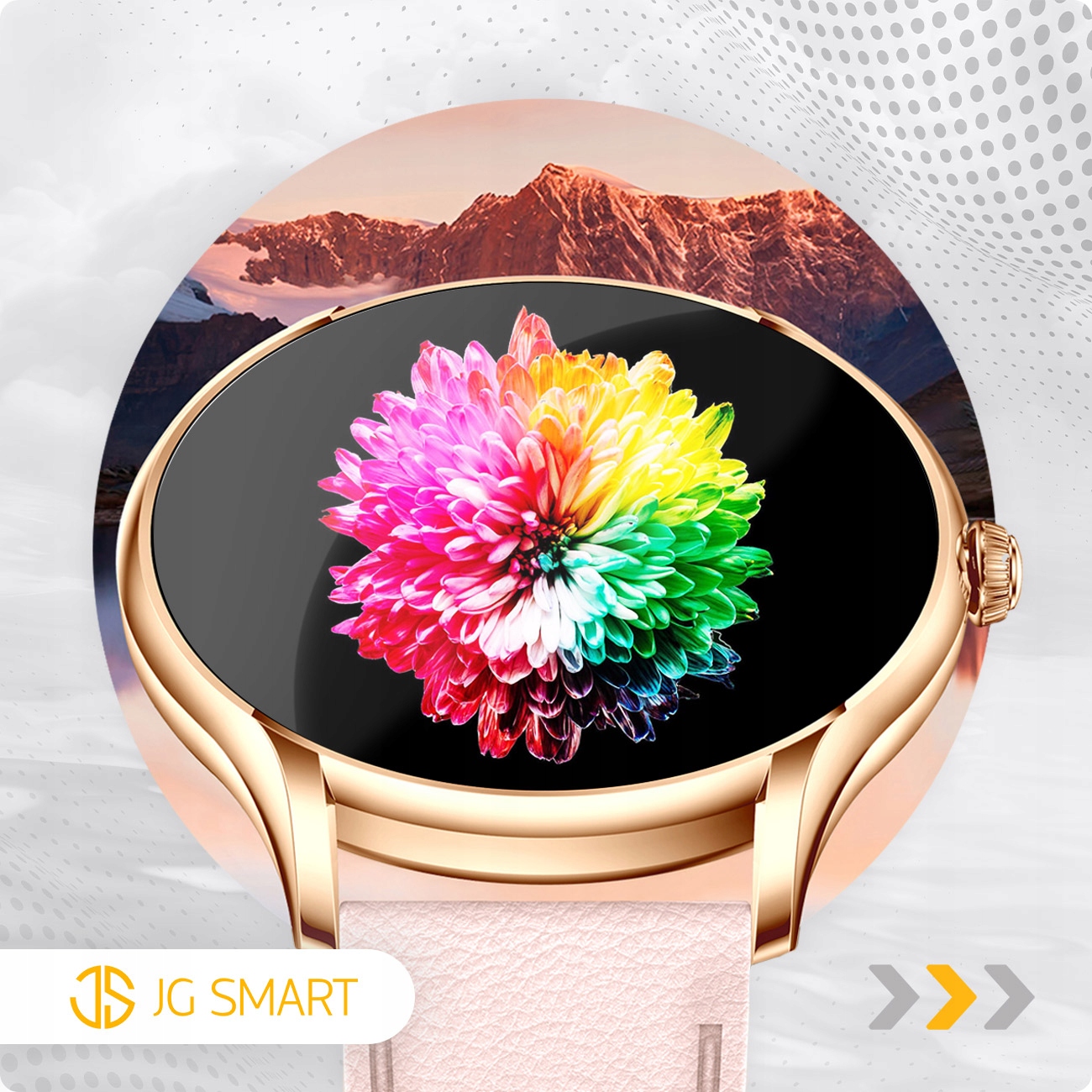 Розумний годинник JG Smart оснащено дуже чітким, кольоровим і повністю сенсорним AMOLED дисплей із роздільною здатністю 466 на 466 пікселів.
