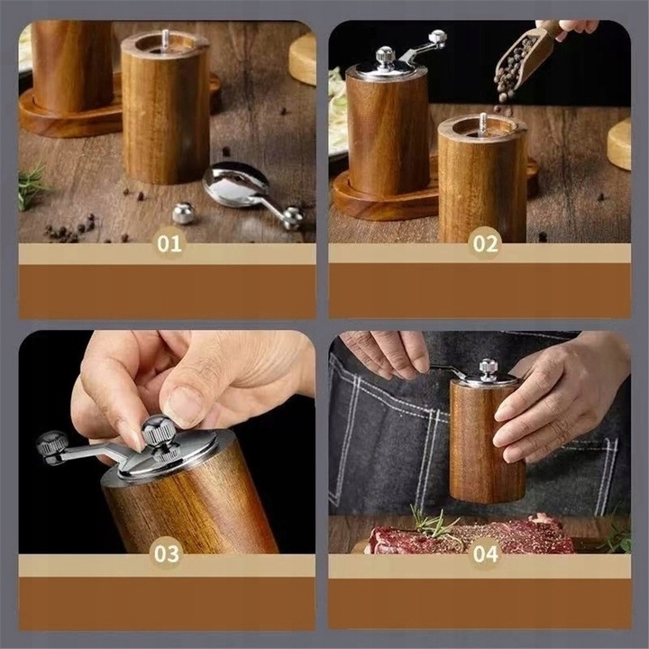 Конструкція: перець млин Млин для перцю має ергономічний дерев'яний корпус, що забезпечує відчуття відпочинку. Він може привабити вашу сім’ю та гостей у будь-який час.