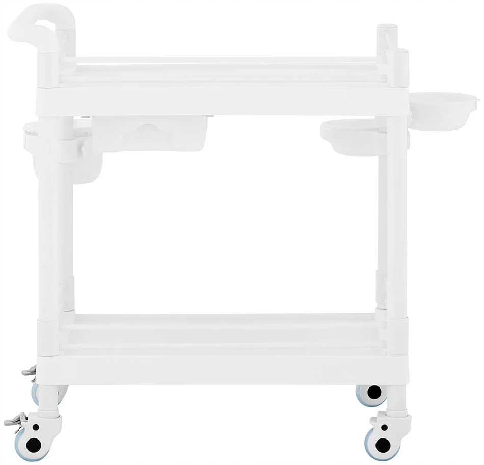 У вас є лабораторне обладнання та реактиви, заховані в шафі чи додатковій кімнаті, і тепер ви хочете взяти все з собою до своєї кімнати? Ви не тільки знайдете багато місця на лабораторному візку. Завдяки чотирьом колесам і зручній ручці ви зможете швидко і легко транспортувати все туди, куди вам потрібно! Комбінація матеріалів для коліс з ABS і ПВХ дуже делікатна і добре підходить навіть для чутливих підлог. Щоб забезпечити необхідну стійкість, просто застосуйте два надійних стоянкових гальма. Лабораторний візок також пристосований для транспортування відходів. У будь-якому з них можна прикріпити 3 практичні контейнери (один із них із кришкою), які можна обертати на 360° залежно від ваших потреб.