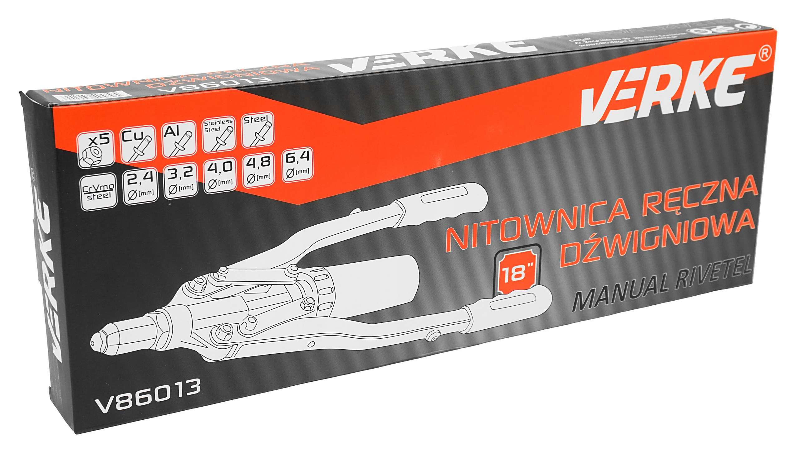Ручний риніфікований до зубів алюмінію, мідь, сталь та нержавіючі заклепки в межах від 2,4 до 6,4 мм. Тіло і ручка, виготовлена з вуглецевої сталі. В'яжучий механізм має три щелепи. Завдяки відповідній товщині стіни та належній вибраній довжині ми використовуємо клеєну без використання великих зусиль. Бак для нитки зламаних ядер дозволяє підтримувати чисте робоче місце.